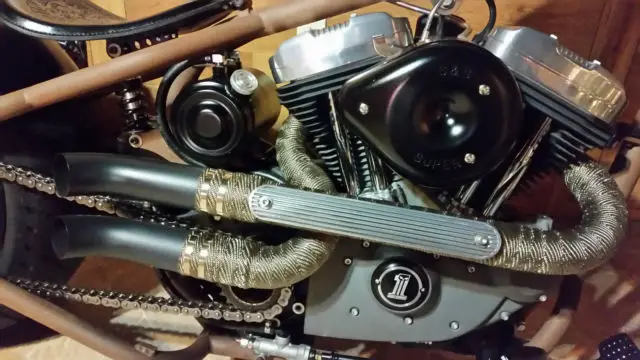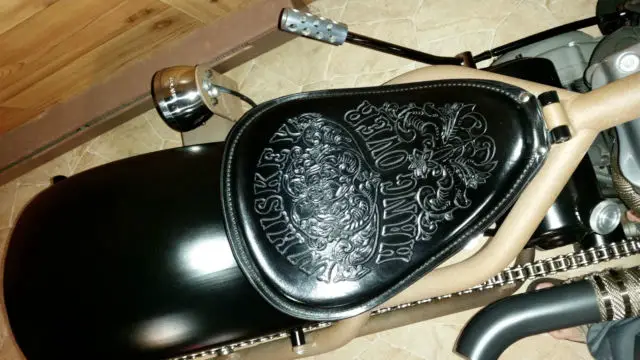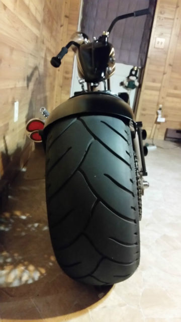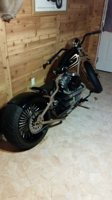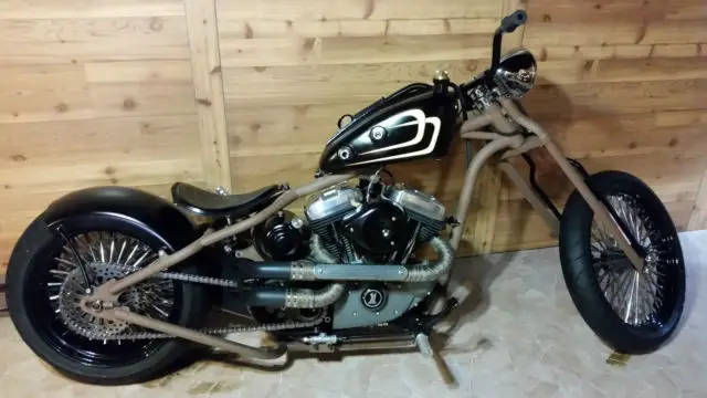 "The Whiskey Hangover" Custom build hard tail with Led Sled Customs frame (6 up, stretch, 0 degree rake) and Led Sled springer front end, 250-18 rear tire and 21" front on DNA Mammoth Spoke wheels, 200 cc Harley Sportster motor with S&S Super E carb (approx 13,120 miles on motor), ockey shift with EFM Autoclutch, nd Exile internal throttle. Bike is titled as a 2008 Harley Sportster with matching engine numbers - NOT special construction (easy to register and insure). Currently, his bike is done as a rat bike with flat finishes and "faux-tina" simulated rust. You can enjoy riding it and never have to wash or polish it. Hand tooled custom leather seat. Amazing bike for the money - you won't find another like it.