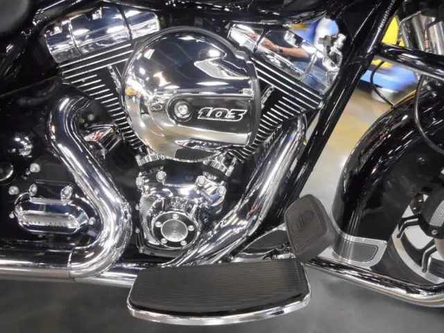 You are looking at a bone stock 2014 Harley-Davidson FLHR Road King finished in Vivid Black with only 6,672 miles on it! This bike is powered by the big 103" motor along with a 6 speed transmission! A perfect bike for riding around town or for the long hauls! The paint is in great shape and the chrome is shiny and unpitted! We just dropped new fluids in it and put it through a full safety inspection so take a good look at the pictures and call us with any questions.?»?