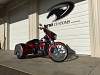 The trike kit is an independent suspension Hannigan Transformer that has been customized with reverse - easy steer - the fast back top - fender skirts - ground effects - custom side covers - 16" chrome wheels - two tone paint - 9 cubic feet of trunk space and a trunk carpet.