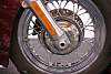 THERE ARE NO DENTS OR DINGS THAT I CAN FIND ON THE BIKE, OWEVER THERE ARE CHIPS/ TOUCH UPS ON THE FRONT FENDER AND FUEL TANK. THE CHROME AND ALUMINUM ARE IN GOOD CONDITION. THE TIRES HAVE GOOD TREAD LEFT ON THEM.