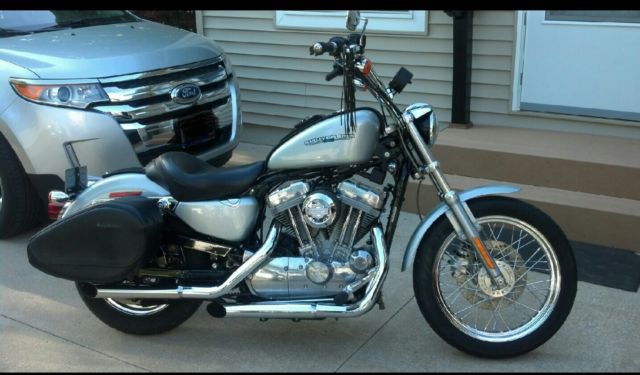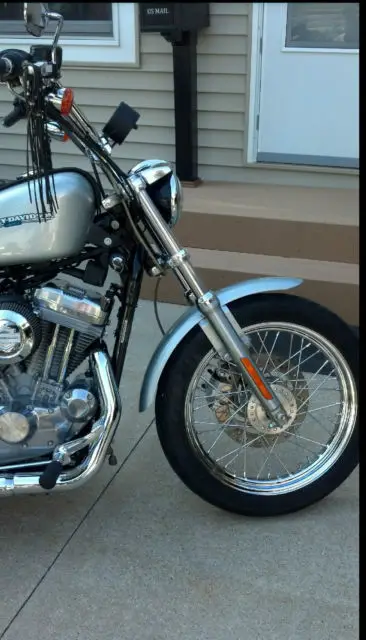 Beautiful one owner Harley Davidson Sportster, ll set for a woman rider, ut with a couple changes, ust as cool for a dude. Many extras added, ncluding...detachable windshield, ini apes andHarley Davidsonbraided grips, orward controls, raided Mustang solo seat, arley Davidson hard leather bags, atching silver side covers, hrome rear light bar, ustom tank and rear fender leather panels with silver inlay and braids, rlen Ness stainless steel washable air filter with Harley Davidson "bling" chrome cover, &D slip on mufflers (that sound awesome)... & New Harley Davidson gel battery. Alwaysruns great, ounds even better, amp;never been down, nbsp;hasa tinystone chip on front fender,no other marks.Always kept in heated garage on carpet or rubber. I've never had any problems with this bike,very dependable,and been a blast to ride.