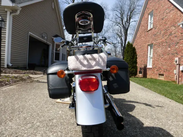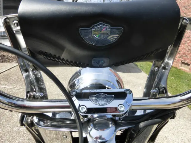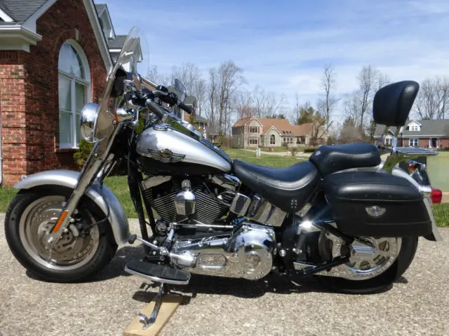 This is a 2003 Anniversary model Fatboy with the gold key package. The Gold Key package includes the following: 100 Anniversary DetachableWindshield Kit, Windshield Bag, eather Saddle Bags, etachableBackrest,Two seats (Stock and Badlander), ank Panel, ender Medallion, andlebar clamp, rips, nd Motorcycle cover. Other extras: Chrome Fork Sliders, ngine guard with Highway pegs, assenger Highway pegs, wo windshields, tall & short), hrome axle cover kit, hrome Sprocket cover, hrome Belt Guard,Chrome Swing arm cover, ndVans and Hines Longshot pipes(Original pipes also).I'm the original owner and the bike is in excellent condition for a 13 year old bike. All service records and I have used synthetic oil in this bike since new. I'm selling the bike since I got a new touring model and I need to make room in my garage.