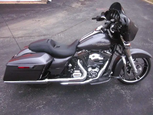 Up for sale 2014Harley Davidson Street Glide Special FLHXS Touring bike comes with 103 V-Twin fuel injectedengine and 6 speedmanual transmission. This bike comes with touch Screen Navigation andInfo center, BS brakes, ruise control,Original MSRP $22,499price.This bike waspurchased from aninsurancecompany therefore carries salvage title. Bike has following damages but not limited to: misc. dents and scratches, few minor scuffs on front fender, pper fairing a few small paint rock chips(See pics)exhaust mufflers have a few scratches on the bottom, ndexhaust heat shield a few scratches,right saddle bag is scratched and latch(See pics)rear fender skirt scratched on bottom(see pics). When bike was purchased it had front end damage, ront forks were replaced with brand new HD complete fork set. Frame down tubes are slightly bent back(see pics) so it can be pulledforward on any frame machine, owever it can be left like it is, epends how you want to handle it. We have done numerous times down tubesstraightening previously on 13 and down Touring bikes and 14-15 Touring as well, nce bike is positioned tight on frame rack, hose tubes pull pretty easy with soft straps to avoid any paint damage to frame. Bike also might need new battery current one is on trickle charge.There is parts on Ebay for the same color pattern so you might find a part and no need torepaint, ame color.I assume serious bidders only! If you have any questions about the bike, eel free to askprior placing bid on the bike, will be happyto assist you in any way I canwith this purchase.Bike isbeing sold in "as is"condition, hat you see is what you will get, ll sales are final no returns and no refunds. Please review all the pictures of the bike, t should give a good idea of the bike, ts shape as well as damagedneed attention areas.Thanks for bidding and ride safe!God bless!