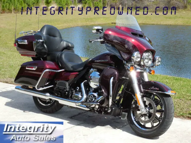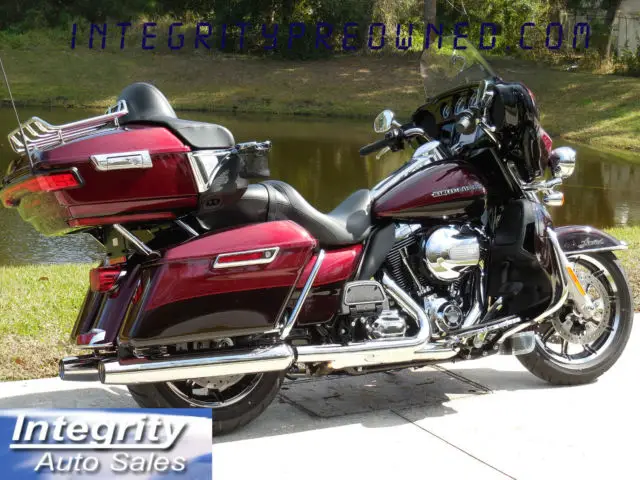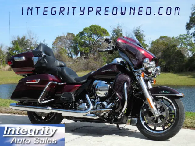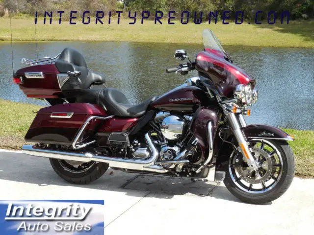 I'm going to start this descriptionin twowords, EW CONDITION!!! That's what this bike is! This Blackened Cayaenne and Red 2015 Harley Ultra Limited FLHTK only has 600 actual miles and still has all the bags, ooks, eys, ools it had when it was new in the showroom. It's all here on this one and you won't find a blemish anywhere. It just came in for a new Toyota so their loss is your gain. The Ultra Limited is my favorite touring bike and I own one myself and the technology is incredible. The NAV and Boom Audio allows you to communicate on the phone play ipod or usb stored music and the NAV will get you to your destination. This ProjectRushmore Twin cooled Harley is one amazing touring bike and it can make the long days fun with all the comfort and tech. The 103 H.0 Vtwin feels great and the 6 speed issweet. This color combo is real rich looking and almost makes the bike look like a SE bike. I have taken many pictures and a short video so have a look yourself. Bikes like this sell quick so stop in or call today!!! Click here to see the yotube video!!!https://youtu.be/Ir-JuOi-EKE I am offering a 100% satisfaction guarantee or your money back no problem. We are a 100% positive feedback dealer on ebay.We do not charge any extra dealer fees so just add your tax and tag and your riding! We don't always have all owners manuals and extra keys, f we say if we have them it will be in our description. Please don't assume we have them. We guarantee clean,free and clear title to all vehicles we sell,occasionally there is a small delayfor title and we can provide temp tag until you receive it. I do not hold bikes sold on ebay without a deposit unless there is quick communication for payment instuctions. So it is basically for sale until I receive deposit.Ebay buyers we only accept deposits through paypal.There is a 3% surcharge on all credit card transactions over $1000, therwise checks, ash, r wire transfersare fine.We do ship to many places in the USA at great ratesWe doalways consider yourtrade-ins as well. We havefinancingavailable for qualified Florida residents ONLY at great rates. We have an 18 month unlimited mile $0 deductible warranty on 06 and newerbikesthat covers pretty much the whole bike starting at$425 I can email you the terms. We reserve the right toend any listing early since we sell many bikes in our own local market as well.We are Integrity Auto Sales offering quality pre-owned for 25 years at our same great location in the Daytona Beach Area. My name is Jim Coury feel free to contact me on my personal cell386 547 9369with any questions. Please respect the time of day you call me.Thanks and ride safe!!!
