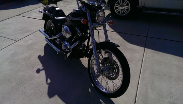 Here is a really nice 2003softail in vivid black. Bike is 100th anniversary edition softail custom with classic laced wheels,custom seat,vance & hines exhaust,silverpowder coated engine chrome forks,and forward controls.Bike has an easy 21,913 miles. Always covered and garage kept,recently serviced and ready to go. 1 owner, uns and looks great. THIS IS A FUEL INJECTED MODEL