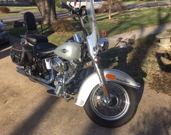 2006 Harley-Davidson Heritage Softail cruiser, 2792 miles. Extras include HD Hi-intensity headlamp and passing lamps, D Hi-intensity multi-function tail light module (running light, urn flasher, nd stop signal), uel injection, ance and Hines exhaust (nice sound, ot excessive), loorboards for driver and passenger, ustang custom seat, luggage rack, nd a comfortable passenger backrest - a great bike for 2-up riding. Windscreen can be detatched. Also includes removable driver backrest, ot shown. Runs nicely, nd always housed in a garage. Chrome and aluminum are in good condition, inor scratches on the fenders and pipes, nd some spots on the lower forks. An enjoyable bike that feels easy to operate, ith smooth and powerful performance. Hi-intensity lights provide great visibility, ront and rear. All transactions will be managed through eBay.