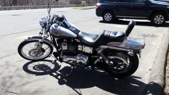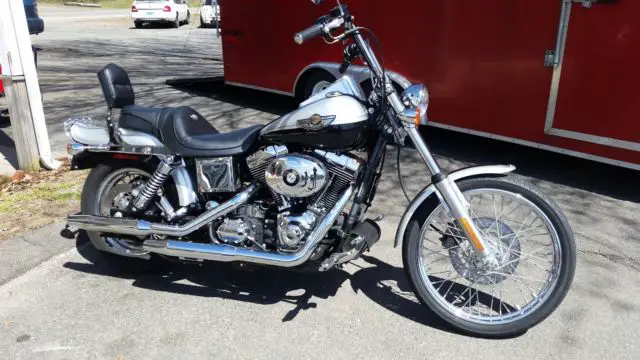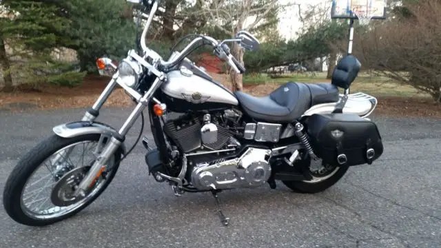 Very nice very low mile original Annaversary wide glide. Complete with every available option. Cover, ard leather saddle bags, indshield, attery tender, ew battery, wo tone paint 8k miles. Excellent condition like new. I have installed the Vance and Hines sli[ on mufflers (slash Cut) and an Arlin Ness big sucker air cleaner which is under the original Annaversary air filter cover. I have all the original parts to be completely stock. I can be reached at 203.417.6624 Adult owned.