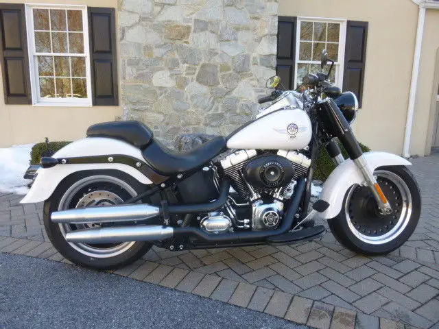 This beautiful and sharp looking 2011Harley Davidson FLSTFBSoftail FAT BOYLO in the super rare White Hot Denimwith only 9,837miles was just picked up from the Reading PA area when the owners wife decided she wasn’t interested in riding her own machine any longer. The bike was sold new atClassic Harley Davidson in Reading, A roughly 50 miles from me. It's had impressive care and is amazingly clean. I personally inspected and detailed the bike and saw nothing to even mention. There is not a ding, cratch, ent or anything that I detected. Every item on the bike works just as it should. The front and rear tires are in excellent like new condition. The leather seat is like new with no wear or damage. The contrasting white and black colors are really sharp and set the bike apart from many other bikes I see. This beauty is everything you would expect on a low mileage machine. Look the pictures over and be impressed. This one will definitely stand out in the crowd and the feel you’ll get when you’re cruisin the streets… well that is something every man dreams of and is every woman’s secret desire.Building on the Fat Boy® legacy, he Fat Boy® Lo brought a darker, lammed appearance to the world of boulevard cruisers. From front to back, his custom cruiser shows attitude, ith custom, lack bullet hole wheels, denim black frame, lacked-out covers and header shields, nd satin chrome in all the places mirror chrome would normally reside. A slammed, arrow-cut seat rides just 24.25-inches off the ground, hile the forward foot controls and low, .25-inch handlebar create a secure stance that inspires a cruising state of mind. With anti-lock brakes andthe Security Package option, hisFat Boy Lo truly isat the head of the pack.Harley-Davidson FLSTFB Fat Boy Lo Model HighlightsSecurity Package including factory-installed Harley-Davidson® Smart Security System with hands-free fob and Anti-Lock Braking System (ABS)Hand controls with fewer wiresNEW Odometer trip switchNEW Single button hazzard warningNEW Larger odometer readout with gear and RPM displayo Seat is lower and narrower for an easy reach to the groundo Leather tank panel with Harley-Davidson® medalliono Satin-chrome tank console and side badgeso Bullet Hole Disc Cast Aluminum wheels with black centers and machined outer rimso Denim Black frame, wingarm, ront shock covers, erby cover, orn cover, oil cover, il tank, nd air cleaner covero Gloss Black triple clamp covers and nacelle, eadlight bucket, ir cleaner cover trim ring, ear fender supports, ootboardso Black powder-coated powertrain with satin-chrome coverso Rear suspension lowered 1.15-incho 200 mm rear tireo Over/under shotgun exhaust with satin-chrome mufflers and muffler shields, nd flat-black header shieldso Half-moon black rider floorboardso Stainless steel 1.25-inch, nternally-wired handlebaro Rolled edge front fendero Full-coverage rear fenderJust some thoughts:You know, s Americans we’ve never lived in fear and we’re not about to start now. No high gas prices, o lyin politician and no slithering terrorist will ever keep me from ridin my Harley because FEAR SUCKS! Freedom and wind will outlast hard times and I don’t know about you, ut I’m gonna ride no matter what! Now don’t you think it’s time for YOU to experience what our forefathers must have thought FREEDOM really looked like! There’s nothing like throwing your leg over the heart pounding V Twin engine that has been the heart and soul of a Harley Davidson for over 110 years. The feel you’ll get when you’re cruisin the streets… well that’s something every man dreams of and every woman secretly desires. So follow your dreams and make them a reality today.ABOUT MY PRICESI do my best to offer higher quality, ower mileagebikes than anyone else and do itat a fair price. Others may be offering bikes for less, ut not for a comparable machine. My bikes generally have significantly lower miles than "average" bikes for similar comparisons so mineshouldbe more expensive than a same year bike with 40, 0 or 60,000 miles on it. Be fair and reasonable with me and I'll do my best to work with you and make every effort to bring yourlifelong dream into reality.About Harleys Direct:I have been a Harley enthusiast for almost 30 years and enjoy them so much that I buy and sell them as a hobby. I handle only top quality machines and when I can get my hands on them, m able to offer them at better than average prices for identical motorcycles found at franchise dealerships. I can do this because I have no overhead and only one mouth to feed. My bikes are not purchased at Powersports Auctions; they are not repos or the bikes other dealers rejected. I purchase the majority of my bikes right out of the garages of the original owners and occasionally from auto dealerships where they are traded. I search high and low for the best motorcycles available and travel upwards of 250 miles in any one direction leaving home some days at 6am and returning many nights at 11pm to find my Harleys. I am positive that there isn’t anyone on the internet that works any harder than I do to bring top quality machines to their clients. Ionly offer above average inventory to the select few who are fortunate enough to "run across" a "harleysdirect.com" offering. Every bike is carefully gone over by a certified Harley technician with adjustments to all necessary components, fresh oil change and a thorough test ride. I guarantee all my Harleys to be of the best quality and the cleanest found anywhere with no stories or long explanations. If you aren't 100% satisfied with your purchase I will happily release youwith no questions and a full refund of your deposit. I have sold bikes to more than 40 states, osta Rica, ustralia, ermany, uerto Rico, rab Emeritus Dubai, anada, aos, hailand and many of my local communities and I do not have any unhappy client anywhere. I'ma very particularperson and do this for afun. I will tell you what I know and can see. Peo