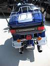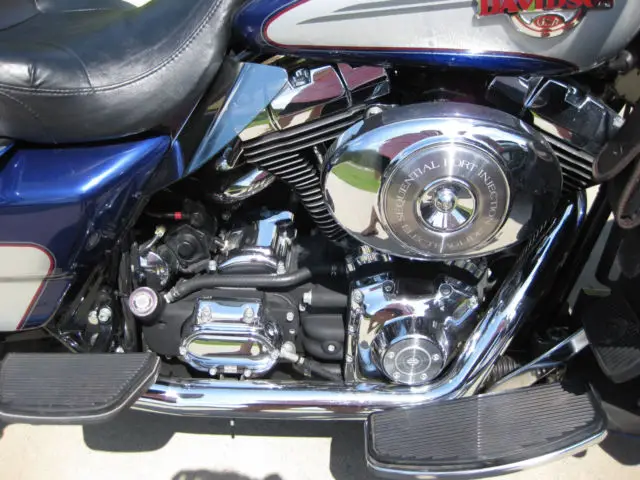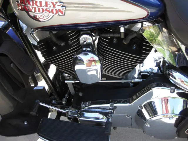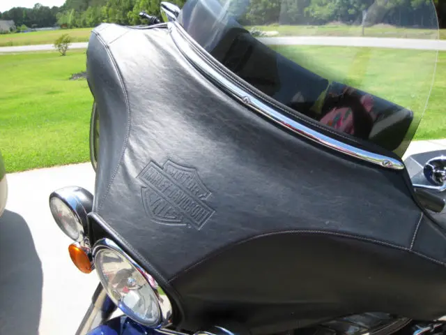 It has new tires, ew battery, ots of chrome options added, leather faring cover and leather saddle bag covers. It also has a true dual exhaust and an upgraded power head.