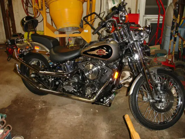 Here is a 1996 Harley Davidson Softail Springer FXSTS that I bought new and had to wait almost a year for it because of the huge demand at the time. Every additional part was Original HD Parts and only the Upswept Fish Tail Exhaust was aftermarket by Sampson Exhaust Company. . This has many many extras with the two tone custom paint as the first Option and only that year was the paint ever available. Since then this paint was not optional or available. The chrome on this bike as well as the finish looks like it has just come from the Factory Dealer with not a mark or blemish on the entire bike. It has only 3001 original miles. Take a good look at the pictures and see what I am talking about. If you were to by this bike today with all the options and extras it would cost over twenty thousand dollars. I will sell this for $12,000.00 and any buyer will be required to put a $500.00 non-refundable down payment until the arrangements to pick up the bike in person can be worked out. That must take place within 30 days of the down payment. I will throw in a jack that has four wheels on it that lifts the bike to move aroun, work on it and polish it plus a few chrome filters,spark plugs, il, nd all factory original parts such as exhaust, orward controls covers etc that have replaced. If any additional pictures are required just ask and any part of the bike I will send the picture of. You must pick up this bike in person and it must be here in New Jersey, o shipping anywhere. All funds must clear the bank before taking possession.