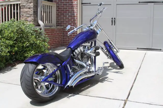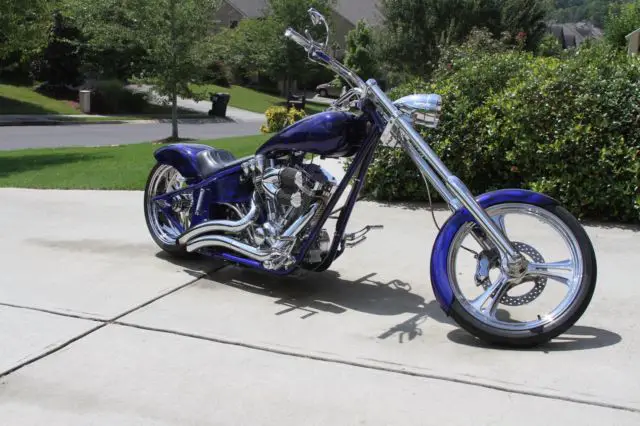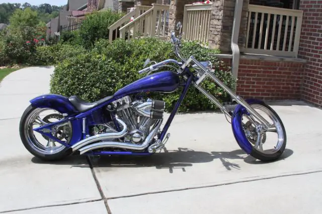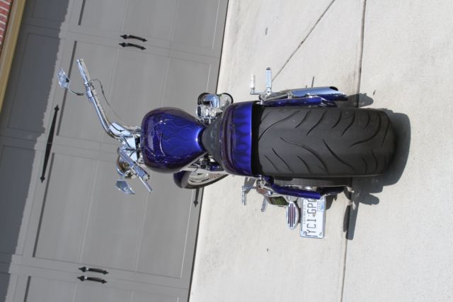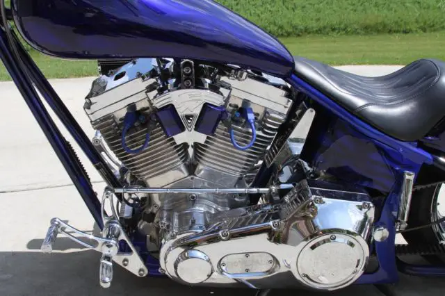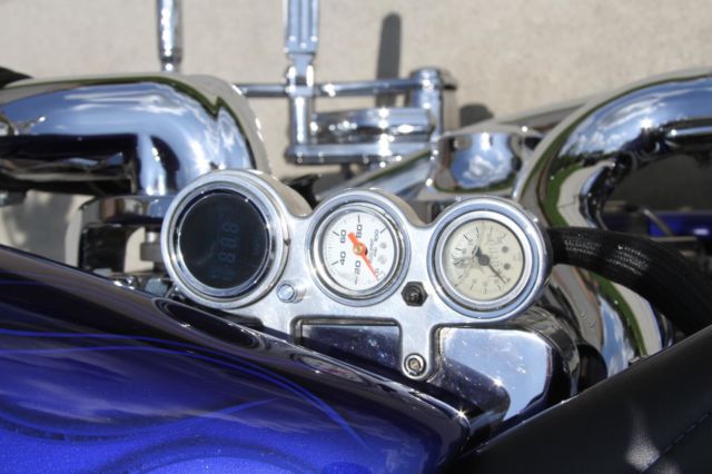 In 2014 the bike was bumped and knocked over. No major damage, ut a lot of cosmetic. I had the bike stripped to the frame and completely redone. Fresh paint, resh top end with rings and cylinder honing, ew billet turn signals, ll new air hoses, ew pipes, ew mirrors, ew horn, ew seat, ew tires…etc. TO MUCH TO LIST, ut I have receipts for over $17,000 that I put into the bike. I replaced the pipes to accommodate a passenger, ou can see the original pipes in some of the pictures.I have the original pipesthat were in the magazine and they come with the bike. Full disclosure, he only issue with the bike is when the bike was painted they guy didn't put a heat resistant paint on the oil tank. So there are a few cosmetic issues on the oil tank. See pictures. I haven't had time to mess with it, hey are hard to see unless you are looking for them. You can get some touchup paint (Cobalt Blue from the House of Color) and do it yourself, r take the tank off and have it repainted. Not a big deal either way. But that is about it. The bike is AWESOME!! But, e bought a lake house and I need a boat more than a bike at the moment! lol The bike appraised for $23,650, efore I had all the work done on it. It is a $30k bike all day long. You rarely get the opportunity to own an Iron Horse Magazine feature bike, on't miss out!