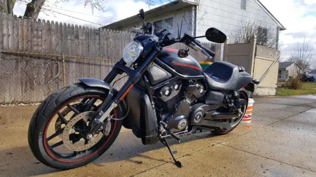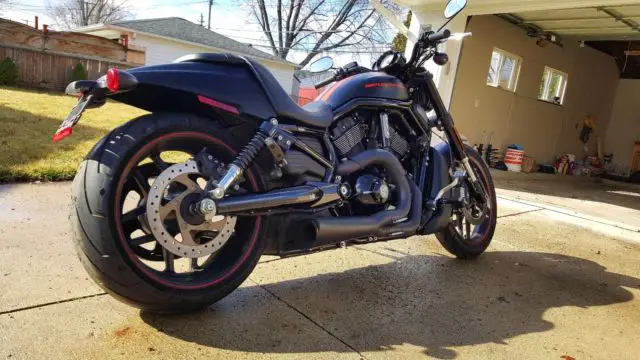 Denim black 2012 Night Rod Special with only 8,000 miles. The bike has never been dropped, nspected by Wolverine Harley in Chesterfield, I for any routine inspections/maintenance and an oil change done every year. I have added a Vance and Hines Competition Series 2-Into-1 complete exhaust system. To make sure the exhaust system worked optimally with the engine I also installed Vance and Hines Fuelpak system. It has made this bike LOUD!!! Will give the original pipes for you to have as well. Only other addition is a small frame bag to hold items like phone, arage door opener and my wallet while riding. Bike rides perfectly and in perfect cosmetic condition. If you have any questions about the bike please ask below and I will promptly reply!