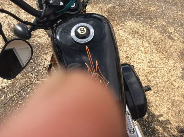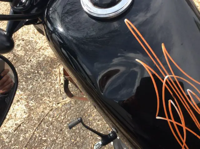Paint is in good condition with some wear on the back fender and tank area from a PPad and bag. There is also a dent on the tank as seen in the pics. Aftermarket chumps handle bars and an attitude stick make the bike look pretty good.