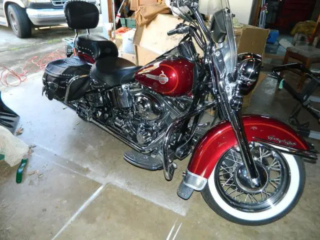 This is a garage kept HD Heritage softail with a bunch of extras. It has chrome everywhere. It has the hard to find Flying eagle covers, t has Vance & Hines true dual exhaust. Runs great no issues. It has taking one long ride to Sturgis and bac, therwise it has just been riden locally. Hate to get rid of it but circumstances say I have to. There is a lien on the bike financed through Harley so the title will be delayed. You can probably get financing through Harley also I have been told. I don't know how that works though. Price is somewhat negotiable but with all the extras this has it is worth it. These pictures were taken after a ride. You are seeing the bike un cleaned . When this baby is shined up it sparkles. This bike is for sale locally so this listing could end at anytime. The bike is located in Lexington NC. Shipping could be available for a fee.