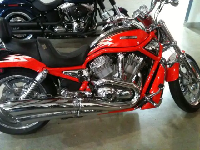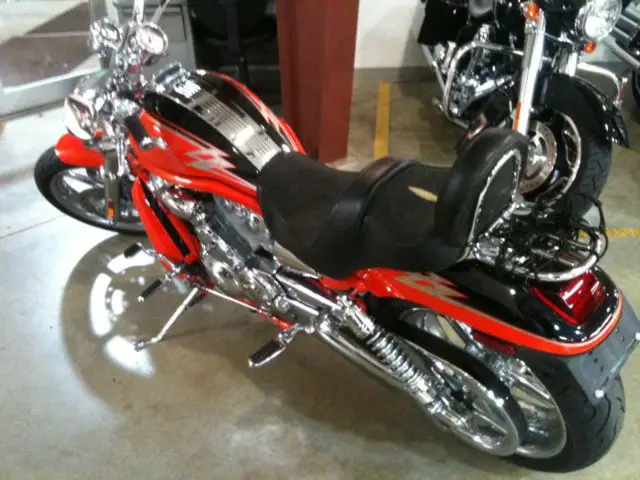 - 2005 Harley-Davidson VRSCSE - Screamin' Eagle CVO V-Rod, ith 7,500 MILES ON IT. IT IS ELECTRIC ORANGE & VIVID BLACK IN COLOR AND POWERED BY A 1250CC H-D FUEL INJECTED V-TWIN ENGINE AND 5-SPEED TRANSMISSION. INCLUDES OPERATORS MANUAL, ICKED CACTUS CUSTOM SEAT AND LUGGAGE RACK. BIKE ALSO INCLUDES TWO KEY FOBS WITH REMOTE ALARM. ONE GOLD CVO KEY. CVO BIKE COVER, ATTERY TENDER, NE LARGE HARLEY HELMET, NE MD SHOEI HELMET, NE LARGE HARLEY LEATHER JACKET, NE LARGE HARLEY ORANGE VEST.