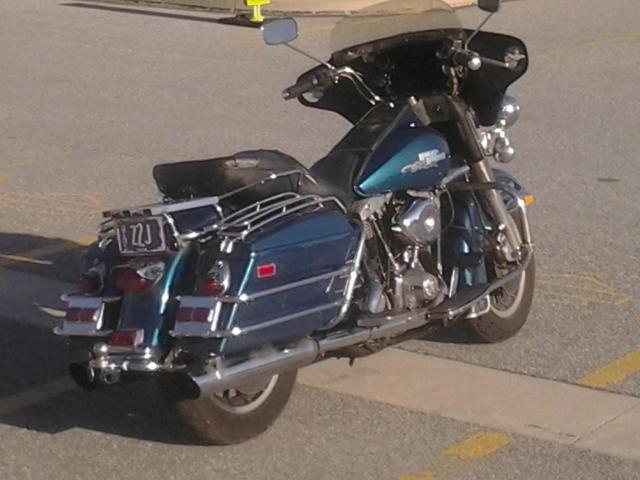 kind of teal or blue...see picture.... runs strong, speed, ubber mounted, nclosed chain, +S carb but otherwise original besided pro repaint from previous owner...no radio, ne saddle bag lock can use repair, mall hole in seat about qtip head size, nplugged fuel gage and clock as it was draining battery, ook the disc brake covers off so not included .... clear title after payment clears ....$500 non refundable deposit...will help be here for shipper but that is it, o crating on my end unless you shipper does...i used uship before works great.... clear title in my name after money clears.... thanks...cashier check ...make an offer!!!!!! had to list a price...shovelheads are really going up in price especially ones before or after AMF