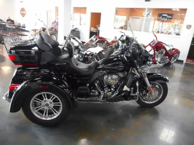 The 2013 Harley-Davidson FLHTCUTG Trike in Vivid Black! This one owner bike is in great condition. The vivid black paint is in great shape and this trike has been serviced regularly. It comes from the factory with the big 103" motor, speed transmission, adio, ruise control, nd of course reverse. It also has a stage 1 kit on it that includes the chrome Freedom exhaust pipes! Not only that but it has the Pingel automatic shifter so there is no need to pull the clutch in or shift with your foot. Simply push the button to shift! The only gear that you need to find with the shifter peg is neutral. The bike does come with the Harley GPS as well. This thing is set up perfectly and doesn't need anything else as it already has everything you want or need in a trike! The new owner will not be disappointed with this bike. We just put it through a full safety inspection and dropped new fluids in it so its ready to roll. Take a good look at the pictures and call us with any questions.