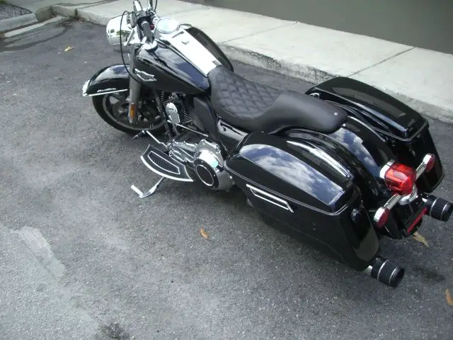 This is our low mileage (2,530)2014 Road King that we decided to customize! So we then added the Eddie Trotta Thunder Cycle Design touch with our Cross Cut rider floorboards, hift peg, loped brake pedal, rips, iming cover, erby cover, addlebag latches, ront turn signal reducers, " exhaust tips, nd our custom mirrors!!! We also added a White Bros Burley lowering kit, D wiring extensions along with the Wild 1 12" chrome bars!!!! To top it off it has a Roland Sands seat and RC Xhaust mufflers!!!! This bike is amazingly clean! Has a 103" High Output motor with a 6-speed transmission!