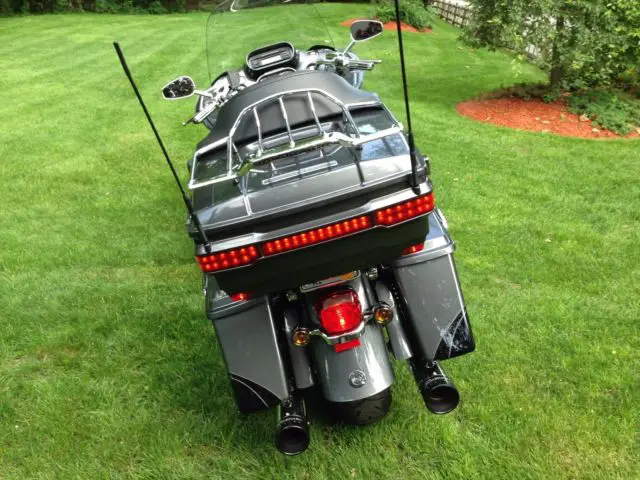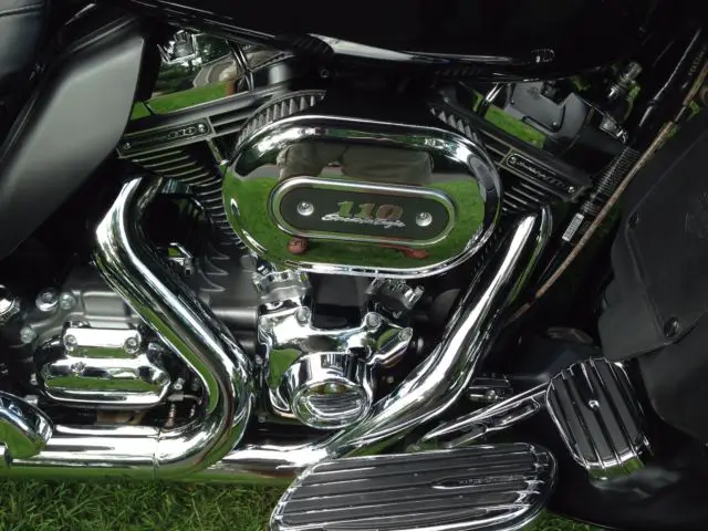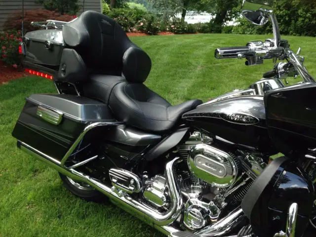 Whether your going to Bike Week or cruising around town this Harley will take you there in style and comfort. This is Harley's top of the line touring bike and production in this color (Charcoal Slate and Black Twilight with Quartzite Graphic) was limited to under one thousand. Like new condition, eeds nothing except a rider who appreciates the many amenities that this CVO edition offers. Screaming Eagle 110 ci engine, arman/Kardon Boom Audio, ar & Shield Apple I Pod integrated, vailable XM, ruise control, eated seats and grips, armin Road Tech Zumo 660 GPS integrated, umble Collection Chrome accessories, irror Chrome Agitator Wheels, BS, ower Locking Tour Pak and saddlebags, ED lighting, einhart 4" exhaust, ustom CVO cover and luggage, eweled key, tc. All service done and up to date at local Harley dealer where purchased.