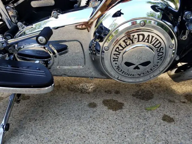 It has had the 1,000 mile service and the 5,000 mile service performed at my local HD dealer. All of the above was done professionally at my local HD dealer. That is only water drops under the bike. Washed it before taking pictures.