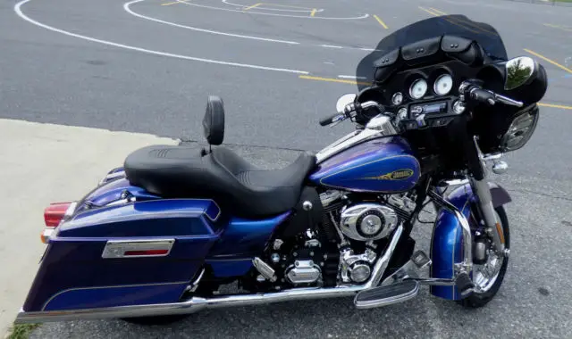 VIN 1HD1KB179Y642659Mileage 12337This is a super clean 2009 Street Glide, ustom color with lots of great ad-ons. This bike has been garage kept, n a battery tender and covered. This bike is packed with all the goodies you could possible want and has had all services completed (details below)Harley Davidson 2009 Limited Edition Color-Black Ice/Blue Ice.The Big Stuff/Add-ons; True Duel pipes with Performance mufflers. Vance and Hines Fuelpak, rlen Ness Big Sucker air cleaner (added 2013), eNale cooling fan, ltra Cool oil cooler (2012), oJack vehicle recovery unit (new 2015), hrome wheels and polished brake rotors and factory security system. Other add-ons (2013) Sony DSX-S310BTX In-Dash Single DIN MP3/WMA/AAC Receiver/Pandora/Bluetooth head unit, .5" speakers (I think they are infinity) with new mounting rings (converts 5"to 6.5"), lso a marine grade amplifier, 0" custom windshield also covers extends to the speaker pods (this keeps the sound clearer at high speeds). Dash gauges were custom outfitted with blue LEDs/lights. The tach and speedo have blue with white at the needle, ayMaker Headlight & HD spot light kit with matching DayMaker type LED spots, D Adjustable Air Deflector Kit, hrome air deflector (fork), rash bar foot rests, oot board kit (moved out 2"), uick disconnect kit for rack or trunk. Adjustable rider backrest, undowner seat, addle bag inserts (grab and go), eather heat shield (thigh area/works great!), may have forgotten some small stuff, hrome and such.Services; 10K service all fluids changed using Mobile 1 V-Twin synthetic oil, ed Line fluids for transmissions and primary case oil. New Michelin Commander II tires, ust installed, ess than 150 miles!