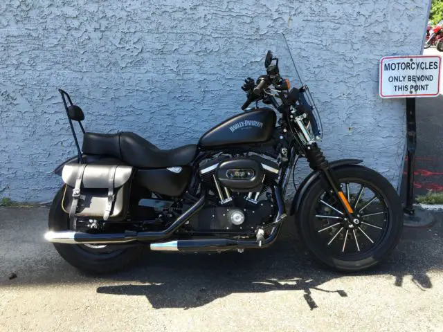 2015 HARLEY DAVIDSON XL883, SPORTSTER IRON FINISHED IN DENIM BLACK WITH PLENTY OF NICE OPTIONS TO SAFELY AND COMFORTABLY RIDE 2 PEOPL, EXTRAS INCLUDE HARLEY DAVIDSON OEM SADDLEBAG, QUICK RELEASE WINDSHIEL, PASSENGER BACKREST AND MOR, DRIVEN ONLY 3498 MILES AND JUST SERVICED HERE AT OUR FACILITY JUST PRIOR TO SALE