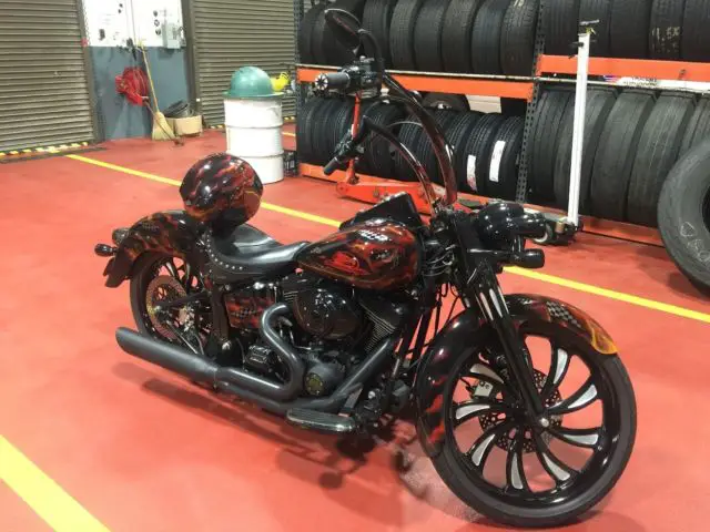 2000 softail heritage classic built frame up, he engine is a 95ci with 2,000 miles or a little more on the top end. bike has close to 26.000 original miles on it. bike makes 93hp and 103ft lbs of torque and i have the dyno sheet as well.1. 95ci with 2,000 miles2. S&S easy start 585 gear drive cams3. fueling cam plate4. fueling oil pump5. S&S adjustable push rods6. D&D fat cat with loud baffle7. .650 head springs8. igniton tuner9. lock up clutch10. Barnette clutches11. Belt to 580 chain conversion12. 21/18 wheels13. wrap around 21'' front fender14. progressive front lowering springs15. chrome lowering shocks rear16. Kuryakyn front light bar17. Cardova 18'' pullback ape hangers19. Arlen ness front fork cans20. Corbin seat and back rest21. new battery22. new Stator23. jetted cv carb24. Power coated parts all over the bike25. new throttle cables26. new brake cables27. new clutch cables28. chrome front and rear brake caliper29. brembo brake rotor30. Digital RPM guage with shift light.