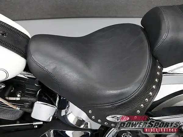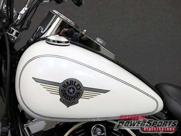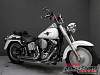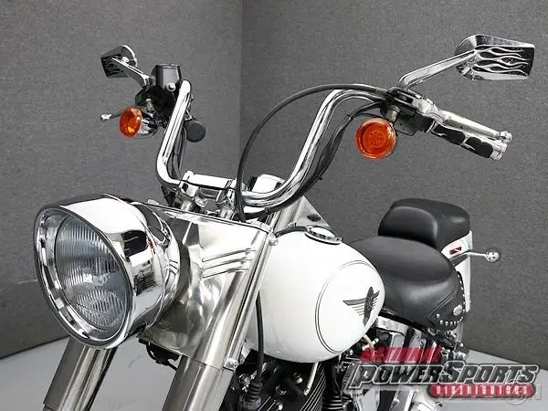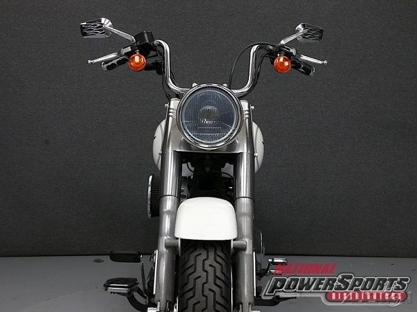 This Harley Davidson Fat Boy has been upgraded with an Arlen Ness intake, G3 exhaust, ay down license plate bracket, ftermarket grips, nd chrome axle covers, rame covers and rear fender trim. It also has been upgraded with flame timing cover, ootboard inserts, erby cover, rimary chain inspection cover and mirrors. The aftermarket mirrors glass do contain some profanity please see the photos above. a 88 cu/in v-twin engine with a 5-speed transmission, he Fat Boy puts out 85 foot-pounds of torque at 3000rpm. It has a seat height of 25.1" and a dry weight of 714lbs.