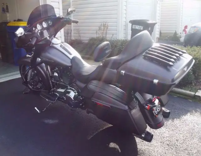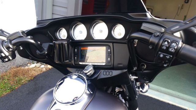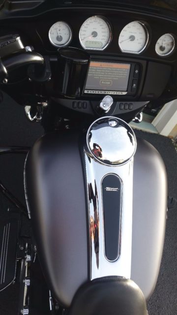 The Bike is in outstanding condition. One owner,garage kept. Factory Quick Detachable Tour-Pac with high visibility flashing break lights mounted to the bottom and lid organizer and black skulls luggage rack.Vance & Hines headers with Vance & Hines FuelPak FPS3 engine controller, alifornia Crusher mufflers. Full Nav. SIRIUS/traffic and weather capable. Black engine guard withKuryakyn Longhorn Offset Dually Highway Pegs. 10" Black Mini Apes, ilwaukee Twins Black Hand Bone Mirrors with Kuryakyn Black Zombie Lever Set.