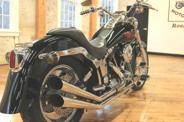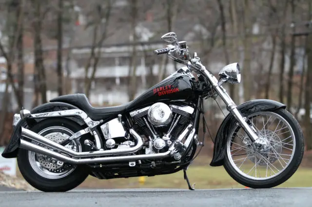 WATCH THE VIDEO FOR FULL EXPLANATION AND RUN-DOWN ON THIS BAD*SS MOTORCYCLE!!!Features and aftermarket extras associated with this bike include: · A fresh new top end (Piston, ings, askets, eals etc) · EV27 camshaft · S&S carburetor & intake · Custom chrome upswept exhaust system · Brand new chrome & black custom forward controls · Chrome pullback bars · Chromed out full front end & full chrome control setup worth over $3,000 (including 6’’ bar risers, rips, lutch lever & perch, ront brake master cylinder & lever, irrors, urn signal indicators with smoked out lenses, ully chrome forks, riple clamps, heels, ubs, isks, pokes, xle, nd brake caliper) · Brand new Dunlop Sports D tires · Fat Boy style rear fender with a tombstone taillight · Full solid one piece Fat Boy chrome rear wheel · Chrome sprocket, elt and axle cover · Brand new chrome inner primary, uter primary, nd inspection cover · Chrome rear caliper · Chrome frame and swing-arm cover · Brand new petcock and fuel lines