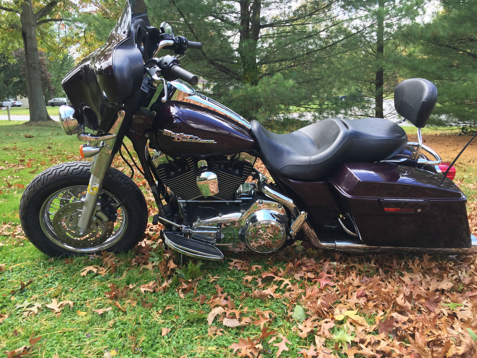 2007 Harley Davidson Street Glide ONLY 9k miles. 96" motor with 6 speed tranny. BIKE RUNS PERFECT. Has 4" Vance and Hines True Duals exhaust system ($900 new). Color is dark cherry. Bike is wired for satellite radio. Looks like bike had a slow speed impact with a deer. Front fender was dented so we removed it. Bike is rideable as is. brakes work fine etc. No fluid leaks. The only cosmetic flaws are some scrapes on lower part of left side bag and a few small scratches by the windshield on the front fairing. FRONT FAIRING IS NOT CRACKED. TANK HAS NO DENTS. BAGS ARE NOT CRACKED OR BROKEN AND LATCH FINE. REAR FENDER IS NOT DAMAGED. WHEELS ARE GOOD AND BIKE ROLLS TOTALLY FINE. ALL HAND CONROLS WORK WITH NO ISSUES. SHIFTER WORKS FINE. BIKE WILL NEED REAR BRAKE PLASTIC RESERVOIR THAT GOES TO THE REAR BRAKE PEDAL. Rear tire is new with very few miles on it. BIKE COMES WITH KEYS. Radio light up but there is no volume. This is a very nice motorcycle with VERY low miles. With a little work it can be a very nice bike. Please look at pics and call with any questions. Bike will be sold with NY state salvage certificate of title. Sold as is. where is. $300 non refundable deposit right after auctions end. full payment within 3 days of auctions end. Please email with questions or call 585 750 3313 Bike is located in Rochester NY finger lakes region. LAST PICS SHOWS THE WAY BIKE CAME FROM INSURANCE COMPANY. all we did was remove front fender.