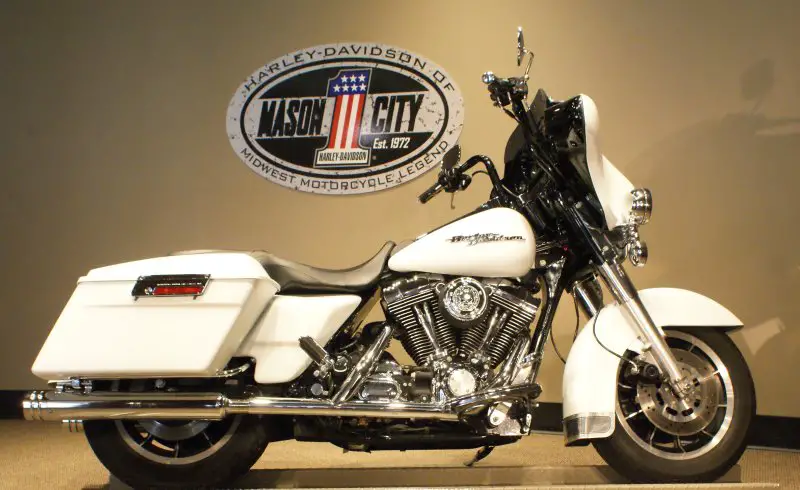 Listing by Auction123. com copyright Auction123. Inc. Harley-Davidson?® of Mason City. Inc. - 706 South Federal Mason City. IA 50401 - 877-WIN-HDMC99 Harley-Davidson® Touring Electra Glide® Classic===White Denim=== Click here for an XL view of the above Image   PrevNext  1 2 3 4 5 6 7 8 9 10 11 DescriptionBasic InformationYear: 1999Make: Harley-Davidson®Model: TouringTrim: Electra Glide® ClassicVIN: 1HD1DGV1XXY630010Condition: UsedType: StandardMileage: 48KTitle: ClearColor: White DenimEngineEngine Size (cc): 1340CarburetedScreamin Eagle air cleanerSafetyPassing lampsWarrantyExisting Warranty: NoneExhaustCustom exhaustComfortBatwing fairingAM/FM/CDHard saddlebagsAccessoriesBatwing fairingAM/FM/CDHard saddlebagsPassing lampsChrome windshield trimSmoked turn signal lensesScreamin Eagle air cleanerShort windshieldBlack ape hangersPainted inner fairingUpgraded speakersLeather low profile seatFlame floorboard insertsFlame brake pedal padFlame passenger pegsFlame gripsCustom exhaustDrivetrainProven five speed belt driveGeneralDirectionsTerms