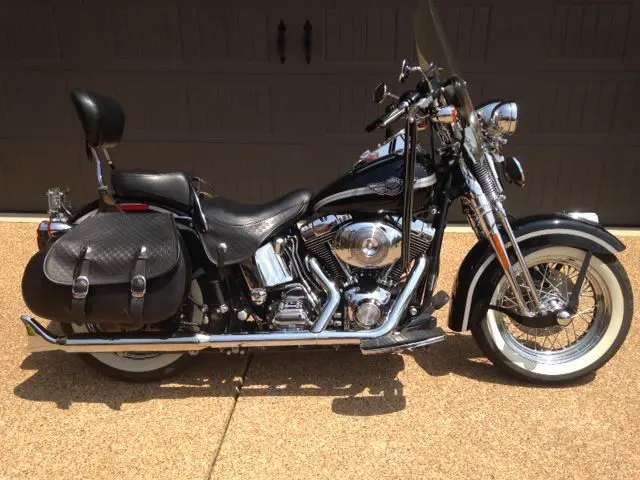 you bidding on a one owner 2003 "100th anniversary edition" heritage springer with only 21. 00 miles in excellant condition. it has all the books and has a trickle charger. it has a "fish fin" pipes that sound so sweet!!!. it is covered in chrome accessories. runs perfect and needs nothing!!. just ride and smile!!!. please look at all the pictures closely and bid with confidence. of course the bike is out of factory warranty and is sold as is. buyer is resposible for shipping and pick up. A $500 deposit is required thur pay pal within 48 hours after purchase