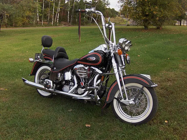 THIS BIKE IS IN NICE SHAPE I HAVE OWNED IT FOR SIX YEARS. I PUT A NEW REAR TIRE ON IT THIS SUMMER. I DID NOT PUT THE BAGS BACK ON BUT I HAVE ALL ORIGINAL BOLTS NUTS TO BOLT THEM ON. HANDLE BARS ARE THE CHUBBY APE HANGER STYLE. I'M THE THIRD OWNER. FIRST OWNER PUT ALL THE XTRA CHROME ON IT LIKE CHROME REAR FLOOR BOARDS SPARK PLUG COVERS FRONT BRAKE CALIPER AND CONTROLS. LIFTER BLOCK COVERS ECT. HAS TWO UP SEAT WITH BACK REST ALSO. PLEASE LOOK AT ALL PICTURES. BIKE RUNS GREAT SHIFTS WELL BRAKES LIKE IT SHOULD. ALL LIGHTS BLINKERS WORK. IT HAS A COUPLE SCRAPES ONE FROM CLUTCH CABLE ON LEFT SIDE OF GAS TANK AND ONE NICK ON TOP OF FRONT FENDER. 22. 00 MILES ALWAYS GARAGED ALWAYS RUN AMS OIL. EMAIL WITH ANY QUESTIONS.