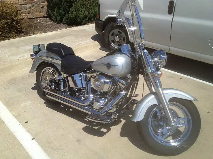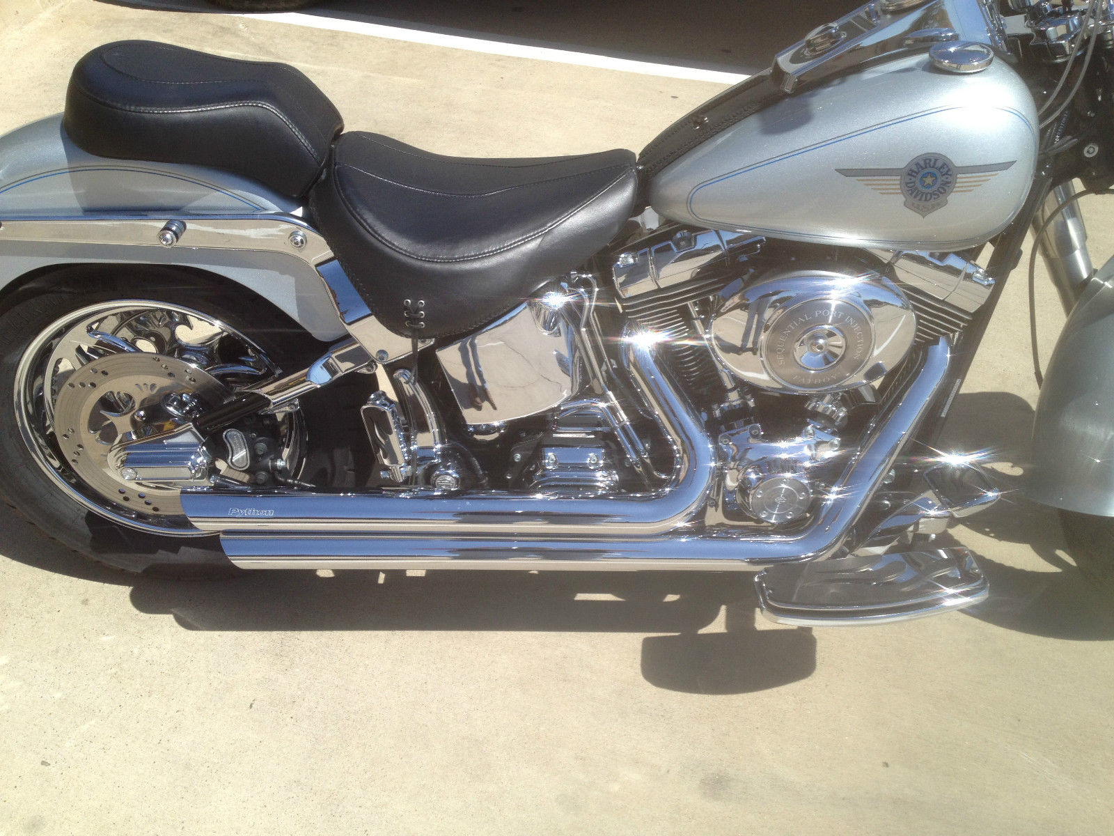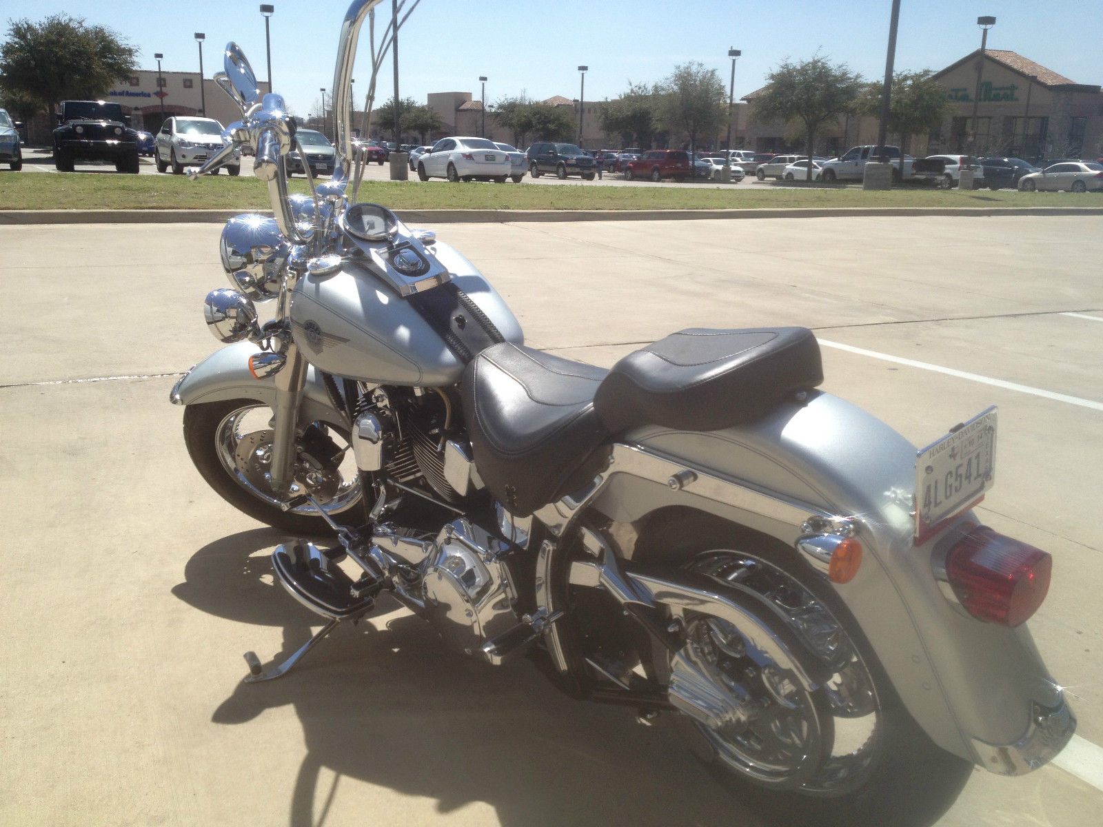 Beautiful Silver and Blue paint. This is the last year HD painted on the Fat Boy emblem on the tankLOTS OF UPGRADES WITH TONS OF CHROME16in ape hangersCostume wheels. grips. egs. loorboards. rake. and shifterPython full ExhaustRear Back rest (not shown)Alarm System With 2 Key FobsThis bike is BEAUTIFULPLUS MUCH MUCH MORE15k Mile Maintenance was performed Last year. Pick up in Dallas Texas availablePurchaser will incur all cost for shipping transportation This bike is being sold in AS IS condition