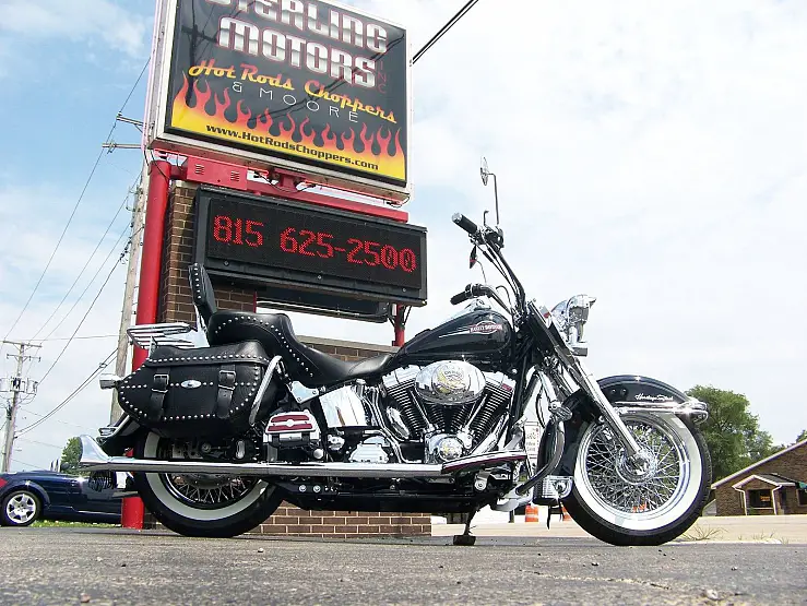The Harley-Davidson Heritage Classic is a perfect example of a motorcycle gleaming with simplicity. The heart and soul of this classic beauty is the Twin Cam 88B engine powder coated in black. rigid-mounted and counterbalanced. It is a true softail which offers an extremely comfortable ride but with its hardtail styling its lines look like the bikes of yesteryear. This particular example has been pampered since day one with all of its servicing being done at Workman?ˆ™s H-D and it currently has just over 18. 00 miles. Within the last 2. 00 miles almost $10. 00 was spent making this bike what is arguably the most beautiful Heritage you will see anywhere. The list is extremely long so we will attach a link to a spread sheet showing all of the upgraded parts but we will highlight a few of them for you though. To start with this bike is likely equipped with every possible piece that Harley sells that says ?ˆ?Live to Ride?ˆ?. The wheels have been upgraded to 80 spoke wheels and it has brand new wide whitewalls. All of the lights have been converted over to LED?ˆ™s with extra lights added under both floorboards as well as the passenger backrest. It has an upgraded H-D touring seat with matching passenger backrest. luggage rack as well as a quick release driver?ˆ™s back rest. You will also find almost every chrome cover available from Harley?ˆ™s catalog as well as quick release windshield with leather pouch. upgraded floor boards. pegs. brake pedal. levers. grips and mirrors. All said and done this is likely the nicest and most tastefully optioned Heritage on the streets. Considering over $30. 00 was spent to create this master piece it is priced to move at less than half of that!
