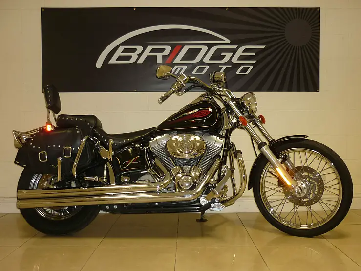 Great example of the popular Harley Davidson Softail Custom which is fitted with some useful extras. Engine bars. sissy bar. rev counter. and soft luggage are all fitted to this machine. Performance Vance and Hines shotgun exhausts are also fitted which sound amazing just like a Harley should. We accept most major Credit and Debit cards and can deliver nationally in our own vehicles. Please phone for further details.