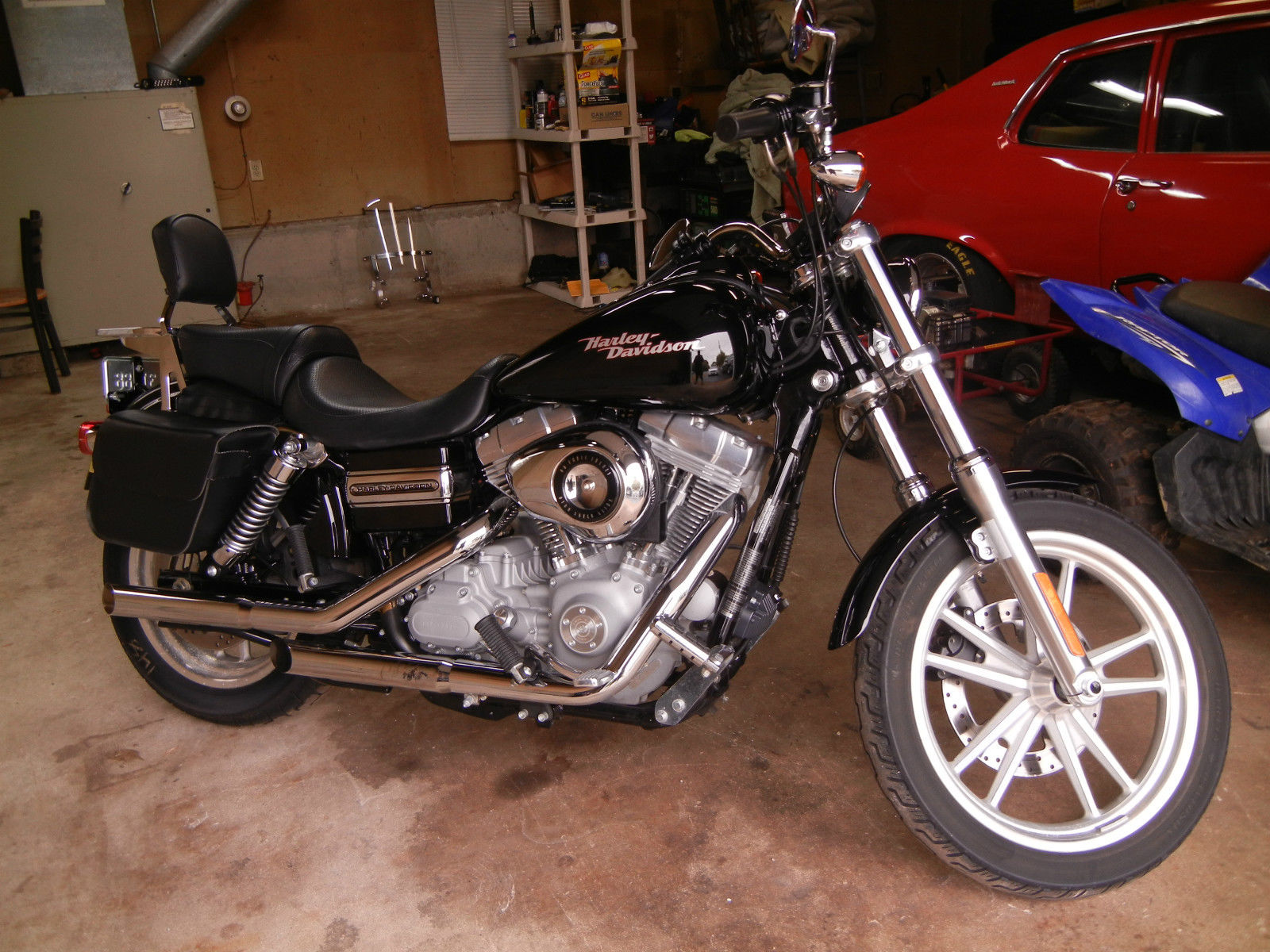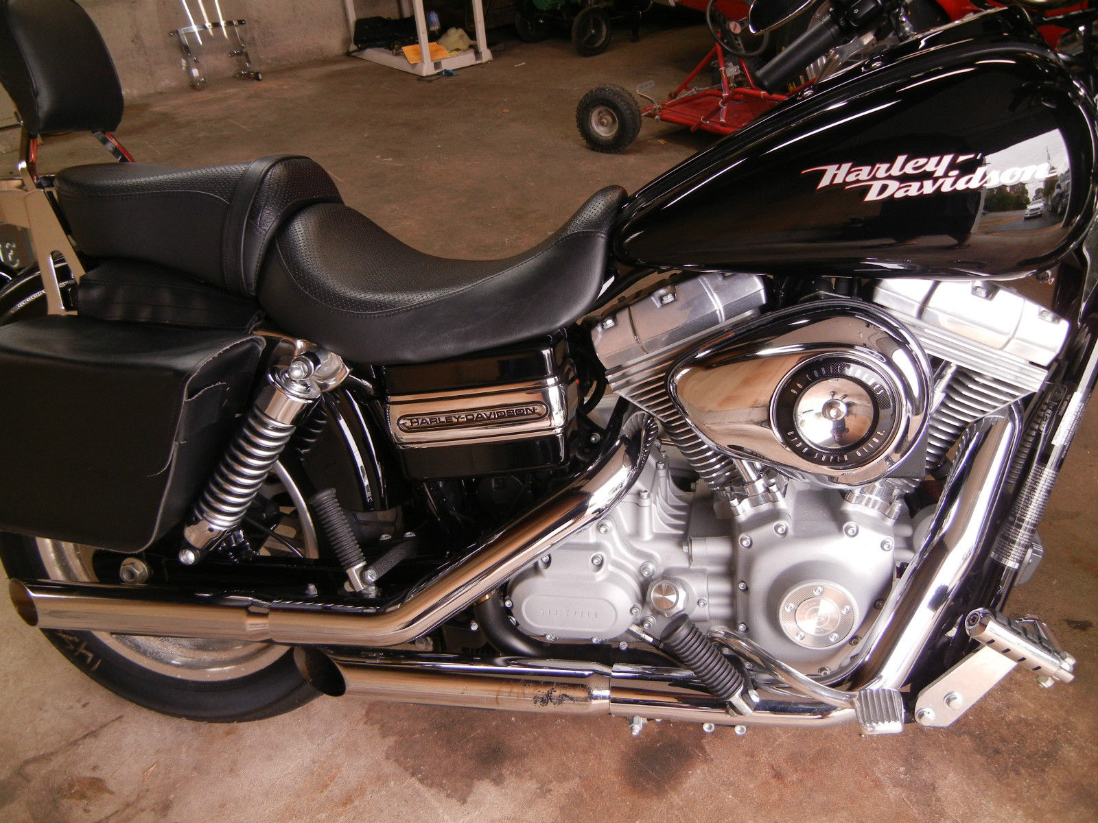 2008 Dyna Glide BlackFuel Injected2500 MilesDealer Serviced w/ only Screamin' Eagle SYN3 Full Synthetic ever YearHd Quick-Release WindscreenK&N Air FilterHighway Peg'sScreamin' Eagle Red Ignition Wire'sCycle-Shack Slip on Pipe's Bag's and Sissy bar XIED for Cooler Engine CoolingBike has alway's been garaged. battery tended. covered and waxed. Bike is in showroom condition w/ one small scratch which can be buffered out. (SEE IN PICTURE #10) Extended Harley Warranty is also transferable. And I will throw in Battery Tender and Hybrid Helmet ( Both Branded by HARLEY )WON'T FIND A NICER BIKE UNLESS YOU BUY NEW!!!!NO RESERVE AUCTION. 100% FEEDBACK SO BID W/ CONFIDENCE !!!