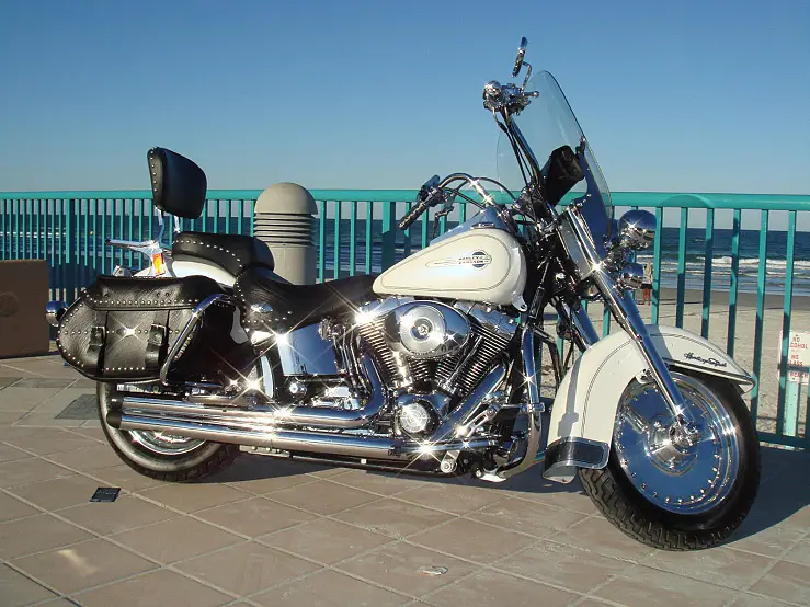 Sharpest Heritage in the Southeast! Winner of numerous bike shows! Chrome Galore. Showroom Condition! 1 Owner! Vance & Hines 2. 5" Long Shot Slash Cut Pipes. New Tires. Chrome Forks. Chrome Transmission and Engine Guards. Chrome HD Shifter Linkeage. Chrome Diamond Plate Foot Boards and Hand Grips with rubber inserts. Chrome Saddle Bag Bars. Chrome studded passenger seat and chrome studded back rest to match saddlebags. Saddlebag Stiffners. Solid Polished Aluminum Screamin Eagle Fat Boy Wheels. Chrome Studded Windshild Bag. Chrome Luggage Rack. K & N Air Filter. Carbs jetted and recalibrated for exhaust. Multi Color Lizard LED Lights. Rear Run. Brake. and Turn Module installed. New Battery. Chrome caps to cover all bolts and screws. and much more. Mileage 17. 00. Just serviced. This is an immaculate show bike that has been kept in a heated and air conditioned garage sitting on white carpet. It is a one owner. never been down. wrecked. or much less even scratched. It has been babied and never left outside in the weather. It is a gorgeous Glacier White that is a true head tuner with all the chrome and sound. You will not find a nicer 2004 Heritage Softail anywhere! I have two bikes and do not have time to ride anymore. My loss is your gain! I have invested over $31. 00 in this bike. will take $11. 00. Bike runs great. and everything works perfect. I bought this bike new at Harley Davidson dealership and have kept it in immaculate condition and serviced regularly. Bike is MINT condition in ALL ways!!!