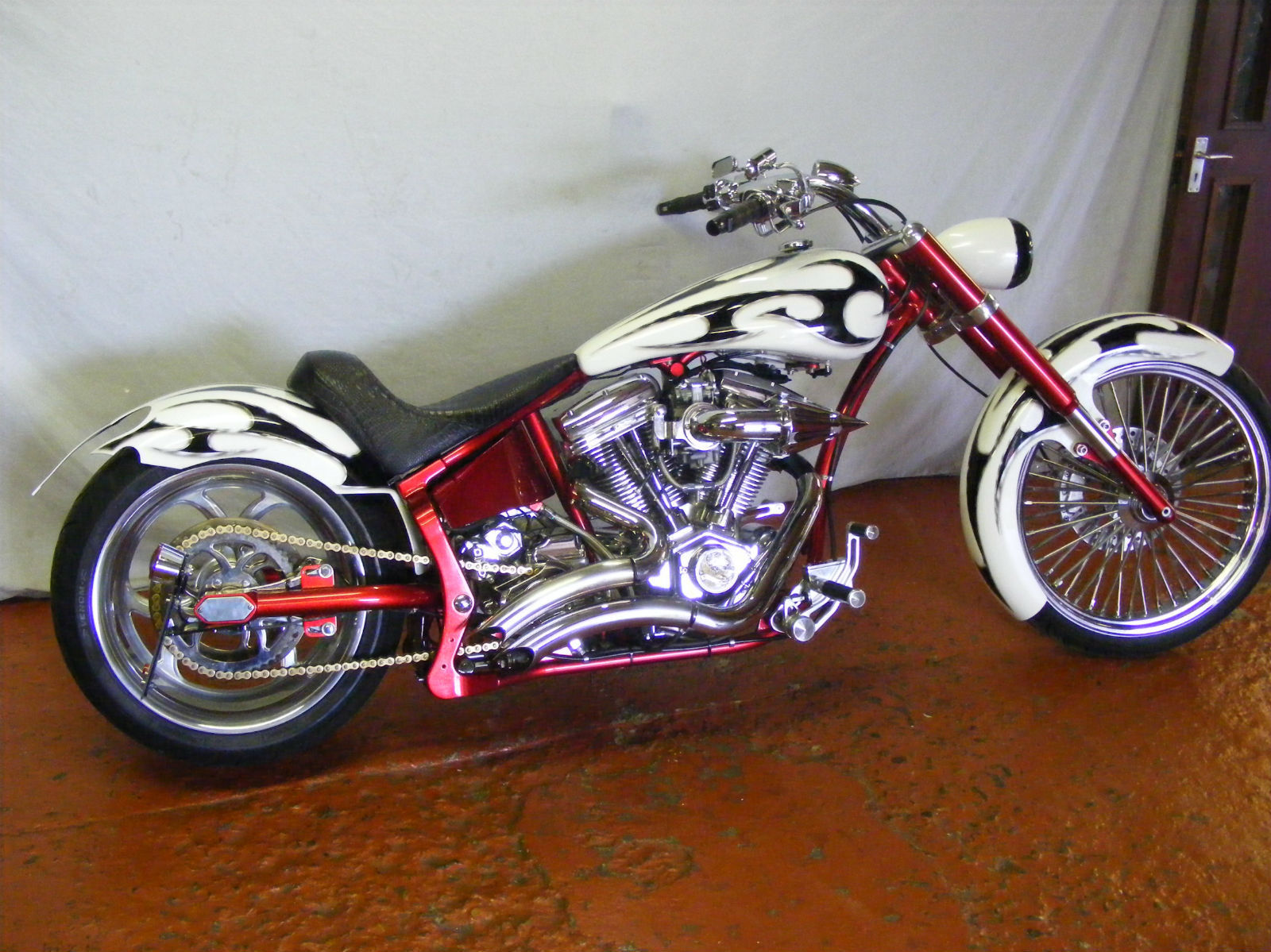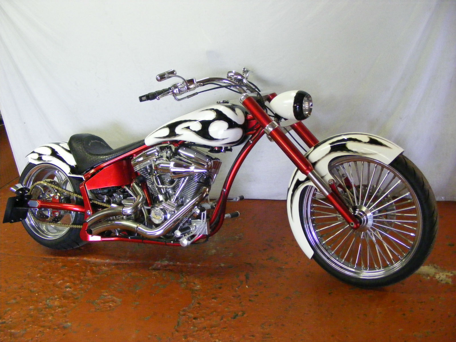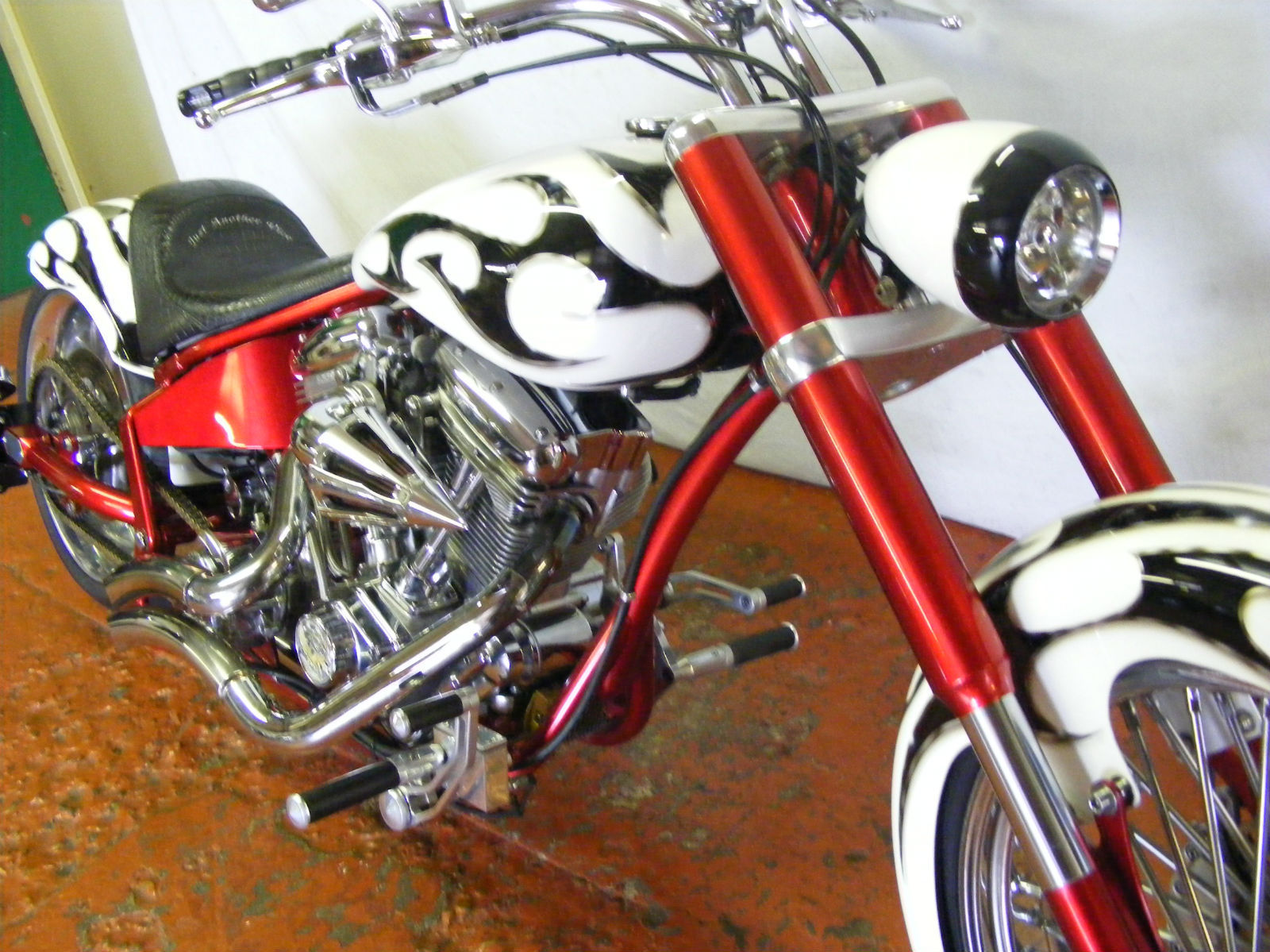 PRO-STREET SOFTAIL CHOP. OLISHED 1700 REVTECH ENGINE WITH RHS GEARBOX 23'' JUMBO SPOKE FRONT WHEEL 300MM SECTION REAR. IR BRUSH PAINT. OUSE OF COLOURS METAL FLAKE RED. OO MUCH TO LIST,