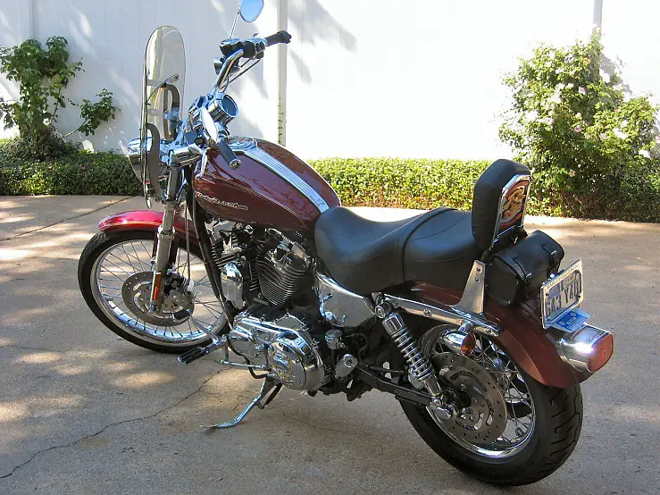 The bike is Lava Red Sunglo with Gold Pin - Bassani Street Sweeper exhaust system. Screamin Eagle High Flow Stage I Intake. 4. 5 Gallon tank. HD Anniversary mirrors. tons of chrome.