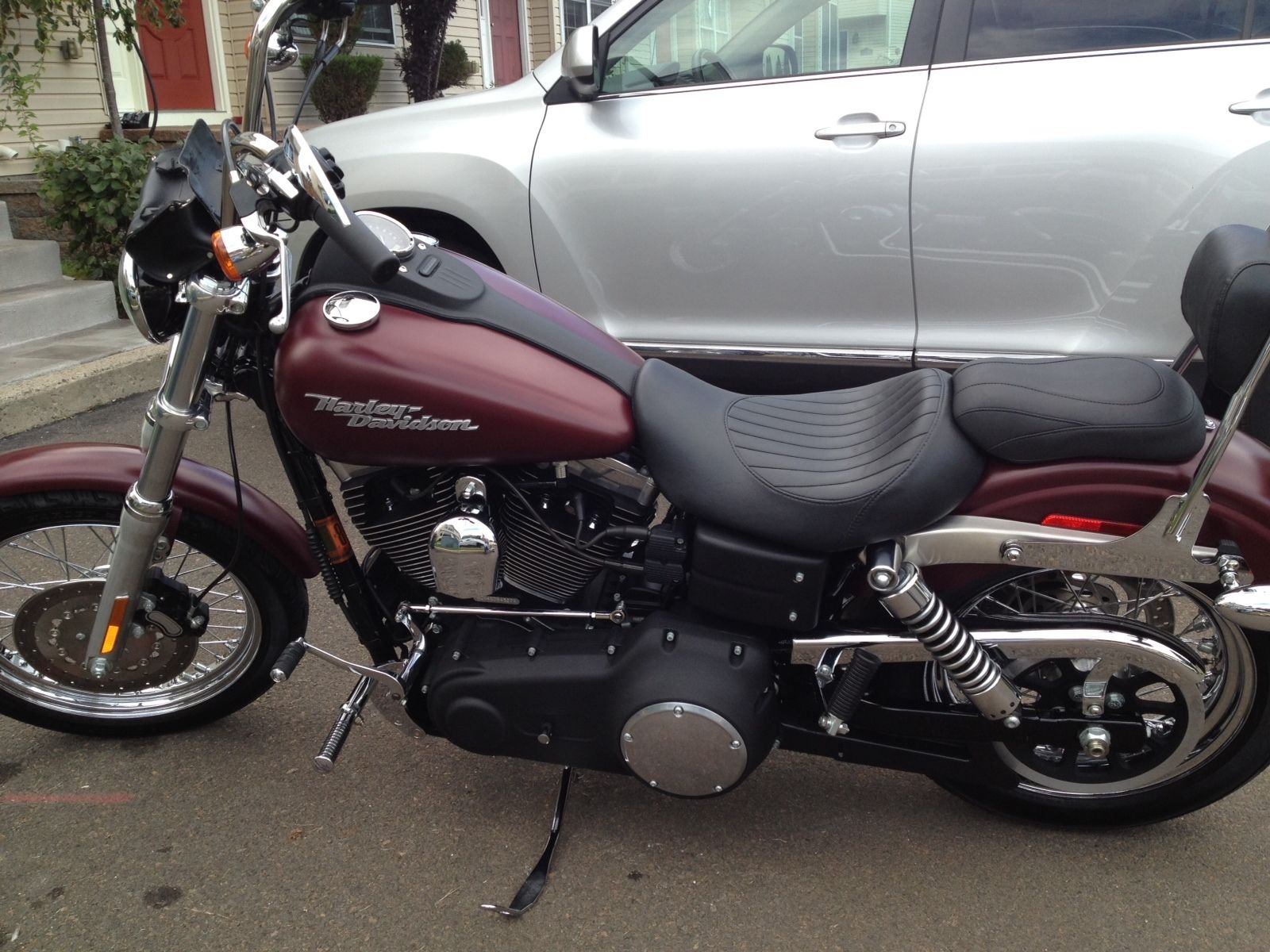 1685 miles. matter burgundy finish. Vance & Hines pipes (also have originals). forward controls. Harley Davidson passenger back rest. soft saddle bags (leather). new cover. Harley Davidson battery charger/tender.