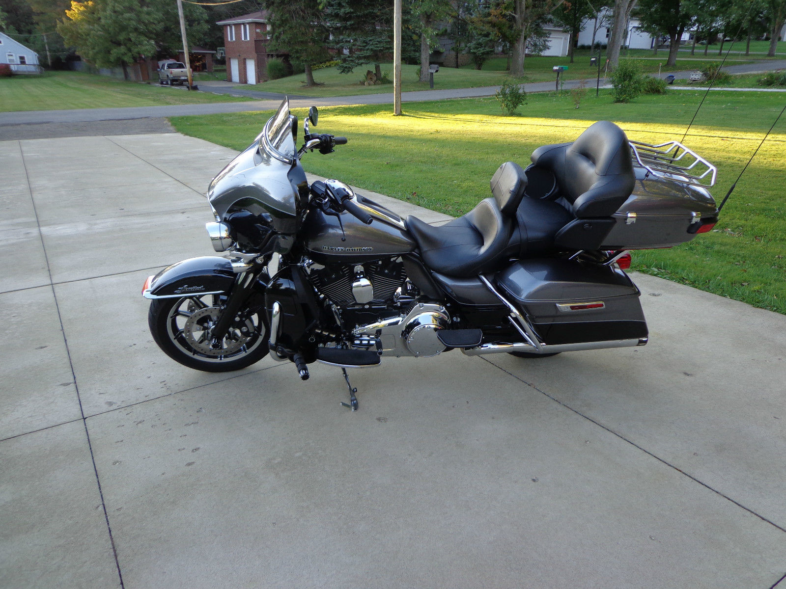 2014 Harley FLHTK 7600 miles in excellent condition. Factory warranty until 5/2016. I have all the stock parts for this bike as it comes with many extras posted bellow. Bike was tuned by Chris at Cycle Solutions and runs excellent no pops or pings. Twin cooled motor runs very cool. no heat issues unlike pre 2014 models. Here is a list of all add-ons the bike has. Arlen Ness Slot Track Inverted Air Cleaner Kits- Black $399. 99 Rush High OutPut Performance Pipes $575. 95 ThunderMax PN#309-562 Auto tune. $989. 95 RC Components Slip on mufflers (Rival Eclipse) $549. 95 RC Components Rival Eclipse Front axle Nut Covers $78. 00 RC Componenets Rival Eclipse Highway Foot pegs $96. 95 RC Componets Rival Eclipse Heel toe shifter pegs $42. 95 X 2 = $85. 95 Six inch smoked windshield $75. 00 Rider Backrest HD# 52572-09A $199. 95 Rider Backrest Mounting Kit # 52589-09A $39. 95 Tour-pak Lid Fitted Organizer HD# 53000302 $134. 95 Billet Style Rear Brake Lever Edge Cut HD# 41600079 $174. 95 Billet Style Heel/Toe Shifter HD# 34045-10 $139. 95 Slotted Shifter Linkage (Black Anodized) $129. 95 Frontend Kit Gloss Black HD# 45800038 $599. 95 Edge Cut Upper Fork Slider Covers HD#45600031 $189. 95 Burst Rear Brake Pedal Pad HD# 50600104 $59. 95 Adjustable Highway Peg Mounting Kit (Gloss Black) HD# 50500168 $119. 95 Edge Cut Mirrors HD# 92441-10 $219. 95 Lighted Hand Control Switches HD# 71500248 $249. 95 Edge Cut Hand control Levers HD#36700067 $159. 95 Boom Audio SirusXM Satellite Radio Kit HD#76000351 $399. 9 Total of Extras $5675 Minus 20% discount $4540 NEW FLHTK $27150. 00 Plus Freight and prep. My 2014 FLHTK with Extras $24. 00