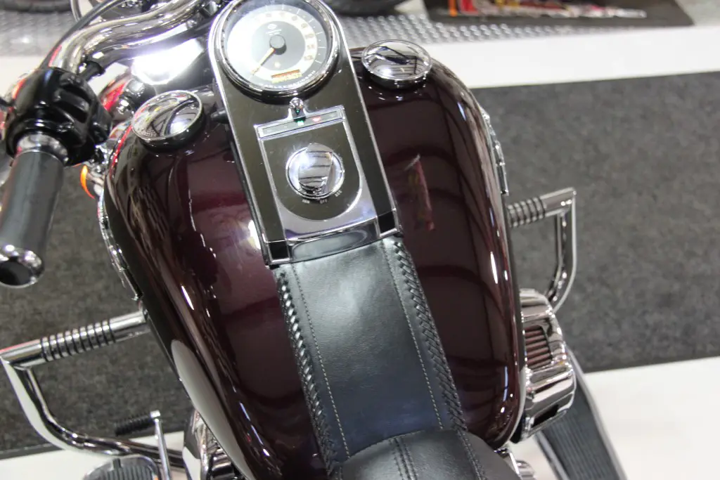 Wide whitewalls. a big retro-style tank-mounted console. and a 24. 5-inch seat height make the Softail Deluxe the lowest riding bike of the Harley bunch.