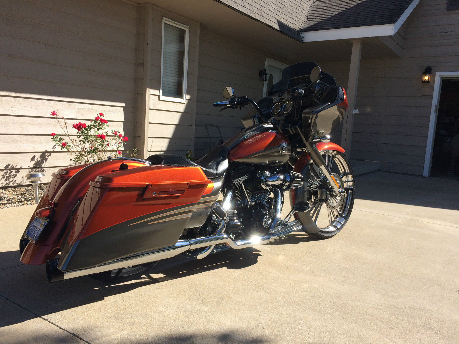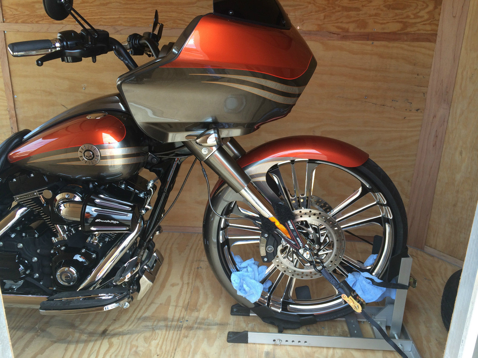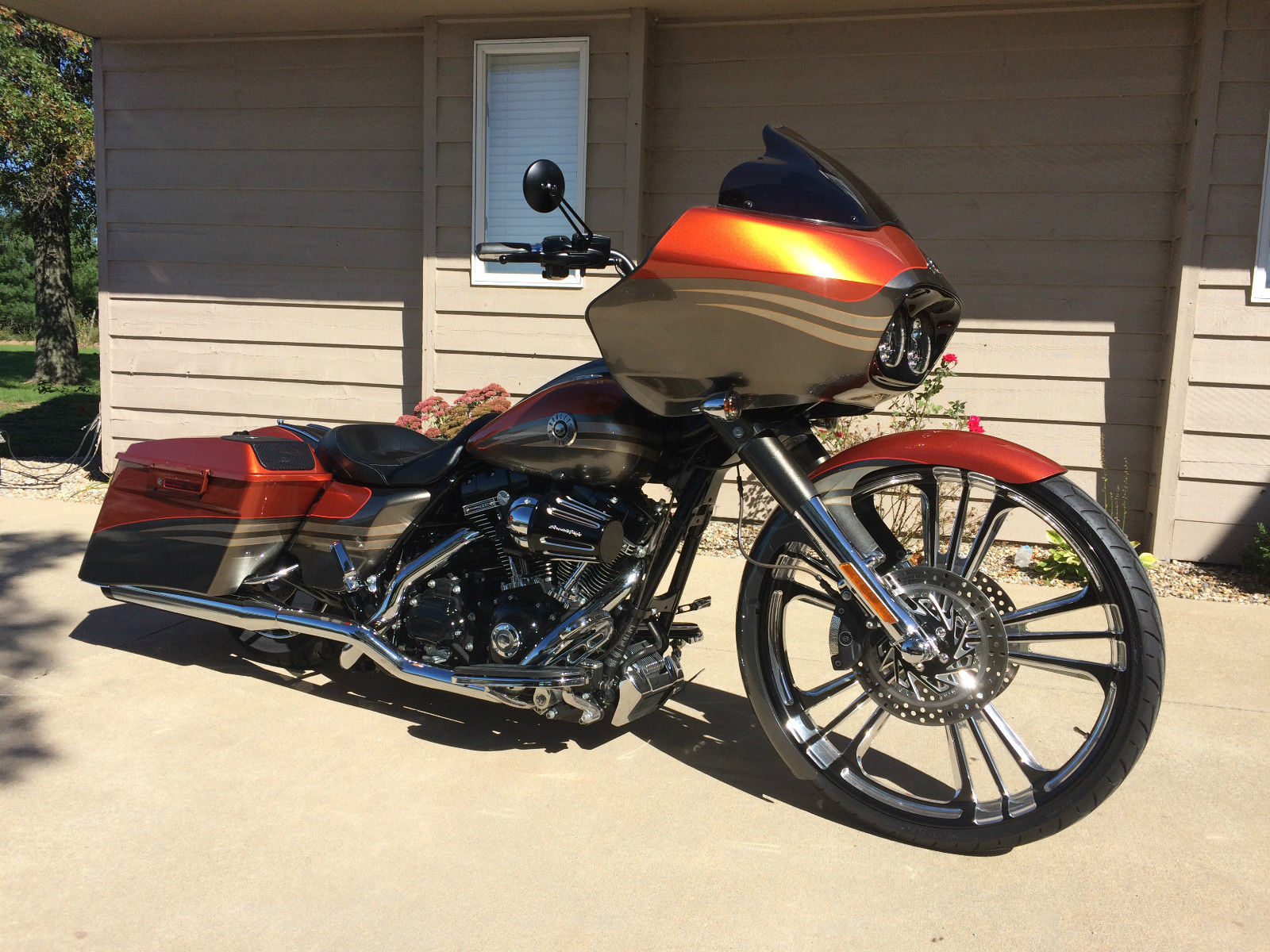 Professionally Built 2013 CVO Road Glide. Bike built by Ultimate Auto of Orlando Florida. HHI 9 degree raked frame with HHI 9 degree triple tree. 26" Performance Machine Wheel with PM Rotors. RC Components Fender. Arnott rear air ride. 110 Screaming Eagle Engine. every available option on bike. olo seat with quick attach passenger seat and both short and tall removable backrests. True dual exhaust with 4" Rhinehart mufflers. Factory warranty until May of 2015. Screaming Eagle programmer with dyno sheets. 1000 mile service performed at dealer. 1820 miles. Rides perfect and turns heads everywhere you go. Show Winner