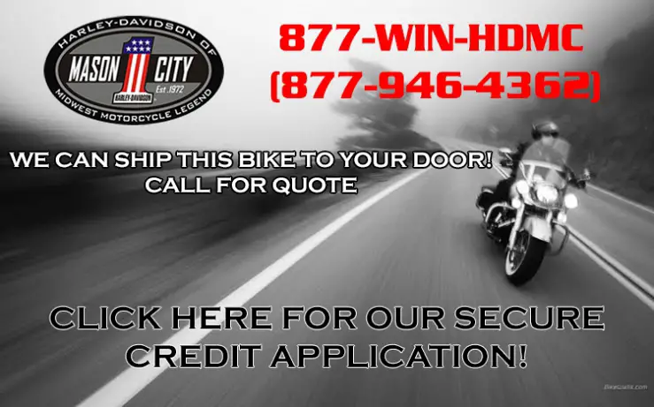 Placing a Bid: Your bid constitutes a legally binding contract to purchase this vehicle. Please do not bid if you're not seriously interested or financially able to purchase this vehicle. Please read eBay's User Agreement Harley-Davidson of Mason City. Inc. reserves the right to. Obtain and verify the registered information of all users who bid on this auction. Cancel any and all bids at our discretion. or end the auction early if necessary. Bidders Age: You must be 18 years of age or older to Bid. Special eBay Bid Retraction Rules: Please read eBay's "Retracting a Bid" If you place a bid before the last 12-hour period of the auction: You may retract that bid before that last 12-hour period but only for exceptional circumstances. You will not be allowed to retract that bid during the last 12-hour period of the auction. If you place a bid during the last 12-hour period of the auction: You will be allowed to retract the bid for exceptional circumstances but only if you do so within one hour after placing the bid. Funds & Financing: Documention fee will apply For help in arranging for a Pre-Approved loan or for any questions please e-mail or phone Katie at641-423-6007 prior to bidding. Buyers Inspection: Harley-Davidson of Mason City. Inc. has done our best to disclose all information known about this vehicle for auction. Harley-Davidson of Mason City. Inc. welcomes a buyers inspection. If you plan to have a buyers inspection. please make sure you inspect the vehicle prior to the auction ending. Inspection fees if any are Buyers responsibility. Representations and Warranties made by seller: This vehicle is being sold "as is". Manufacturers warranties may still apply. Extended warranty may be available. e-mail or phone Katie at 641-423-6007 for details. No representations or warranties are made by seller. nor are any representations or warranties relied upon by bidders in making bids. Taxes and Registration fees: Out of state buyers are responsible for all state. county. city taxes and fees. as well as title service fees in the state that the vehicle will be registered. All taxes and fees must be paid in full in order for vehicle to be titled and registered. Title Information: Vehicles titles may be held by banks or lenders as collateral for loans. In many cases there is a delay in receiving the original instruments up to 21 days from the time we pay a vehicle off. While we usually have all titles in our possession at closing. there are occasions where we may be waiting for them to arrive. If payment is made by cashier's or personal checks we will hold all titles for 10 days or until funds have cleared. Shipping & Delivery: All shipping charges are buyer's responsibility. Harley-Davidson of Mason City. Inc. will help with shipping arrangements but will not be responsible in any way for claims arising from shipping damage! Licensed Carriers are generally insured for $3. 00. 00. 00. We assume no responsibility for damages incurred after the vehicle leaves our showroom. All shipping arrangements are provided by Harley-Davidson of Mason City. Inc. as a courtesy. We are not affiliated with any carrier. Any claims or other communication regarding shipment of vehicles will be between you and the shipper. not with Harley-Davidson of Mason City. Inc. The amount of time it takes for delivery is dependent on the carrier. but is generally 7-14 days from the date the vehicle is picked up from our facility until it is delivered to your destination. Verify with the shipper for an Estimate Time of Arrival to be sure. Finalizing your Purchase: Harley-Davidson of Mason City. Inc. Harley-Davidson of Mason City. Inc. will contact the successful high bidder by e-mail after the auction closes. Successful high bidder MUST communicate with Katie at Harley-Davidson of Mason City. Inc. by e-mail or phone641-423-6007 within 24 hours of the auction ending to make arrangements to complete their transaction. If we cannot confirm your intention to buy or the sale is not completed within 5 days. we reserve the right to relist this vehicle or sell to any other qualified buyer. In order to secure bid on vehicle. Successful bidder (BUYER) must within 48 hours of bid closing send to Seller a Deposit in the amount of $500 by major credit card. cash in person or bank certified funds. Within 10 days of bid closing. Buyer must send balance of funds by bank wire transfer. cash in person. bank certified funds to Seller. At time of sending initial deposit. Buyer MUST fax copy of their State issued valid Driver License. Furthermore. before said vehicle is released for shipment to Buyer. all other Sale related and title related paperwork must be signed and returned complete to Seller. Auction123. Inc. (a service and listing/software company) and the Seller has done his/her best to disclose the equipment/condition of this vehicle/purchase. However. Auction123. com disclaims any warranty as to the accuracy or to the working condition of the vehicle/equipment listed. The purchaser or prospective purchaser should verify with the Seller the accuracy of all the information listed within this ad. Contact Harley-Davidson?® of Mason City. Inc. 706 South Federal Mason City. Iowa 50401 Ask for: Jim in sales for more information! Toll Free: 877-WIN-HDMC Cell: (641) 425-9444Email: Email SellerEmail to FriendEmail SellerComplete and submit the form below to send a link and your message to a friend. First Name:Last Name:*  Your email:* Friend's email:We won't use this information for promotional purposes or disclose it to a third party. Message:Complete and submit the form below to send a message to our dedicated sales team. * First Name:* Last Name:* Email:* Phone: Ext. Preferred Method:PhoneEmailMessage: Copyright © 2014 Auction123. Inc. - All Rights Reserved.    Selling a Vehicle? Create Professional Listings Fast and Easy. Click Here!Image Hosting and Counters by: Auction123. comAlso published at eBay.com