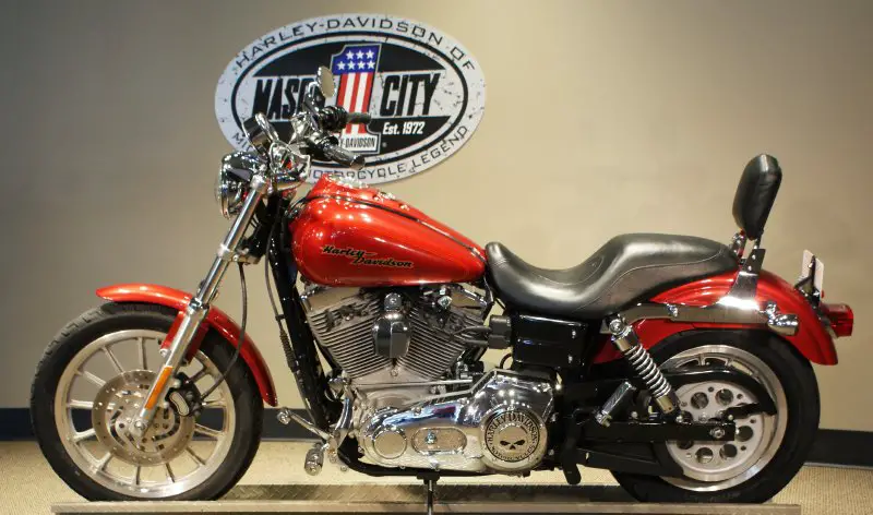 Listing by Auction123. com copyright Auction123. Inc. Harley-Davidson?® of Mason City. Inc. - 706 South Federal Mason City. IA 50401 - 877-WIN-HDMC05 Harley-Davidson® Dyna® Super Glide® Custom==Sierra Red== Click here for an XL view of the above Image   PrevNext  1 2 3 4 5 6 7 8 9 10 DescriptionBasic InformationYear: 2005Make: Harley-Davidson®Model: Dyna®Trim: Super Glide® CustomVIN: 1HD1GTV165K306911Condition: UsedType: StandardMileage: 18KTitle: ClearColor: Sierra RedEngineEngine Size (cc): 1450Engine Size (ci): 88Engine Stroke: 4-StrokeEngine Type: V TwinFuel Capacity (gal): 4. 8Fuel Requirements: PremiumFuel Type: GasScreamin Eagle air cleanerChassis & SuspensionFrame: SteelFront Suspension Type: Telescopic ForkNumber Rear Shock Absorbers: 2Rear Suspension Material: SteelRear Suspension Type: Twin Sided Swing ArmWarrantyExisting Warranty: NoneExhaustVance & Hines exhaustBrakesFront Brake: DiscFront Brake Diameter (in): 11. 5Front Brake Diameter (mm): 292. 1Rear Brake: DiscRear Brake Diameter (in): 11. 5Rear Brake Diameter (mm): 292. 1AccessoriesCast wheelsDetachable passenger backrestForward controlsVance & Hines exhaustScreamin Eagle air cleanerSmoked turn signal lensesSkull derby coverSkull pegsSkull brake pedal padSkull shift pegCustom seatFlame gripsDrivetrainNumber Of Speeds: 5Primary Drive (Rear Wheel): BeltTransmission: ManualPrimary Drive (Engine / Transmission): ChainComfortDetachable passenger backrestForward controlsGeneralDirectionsTerms