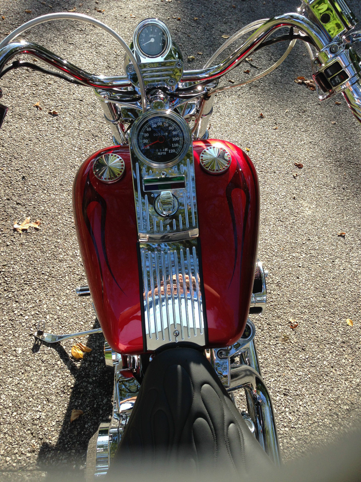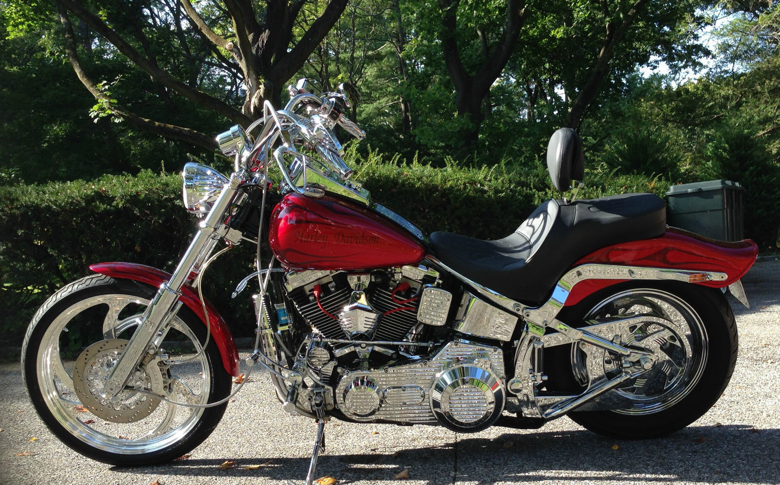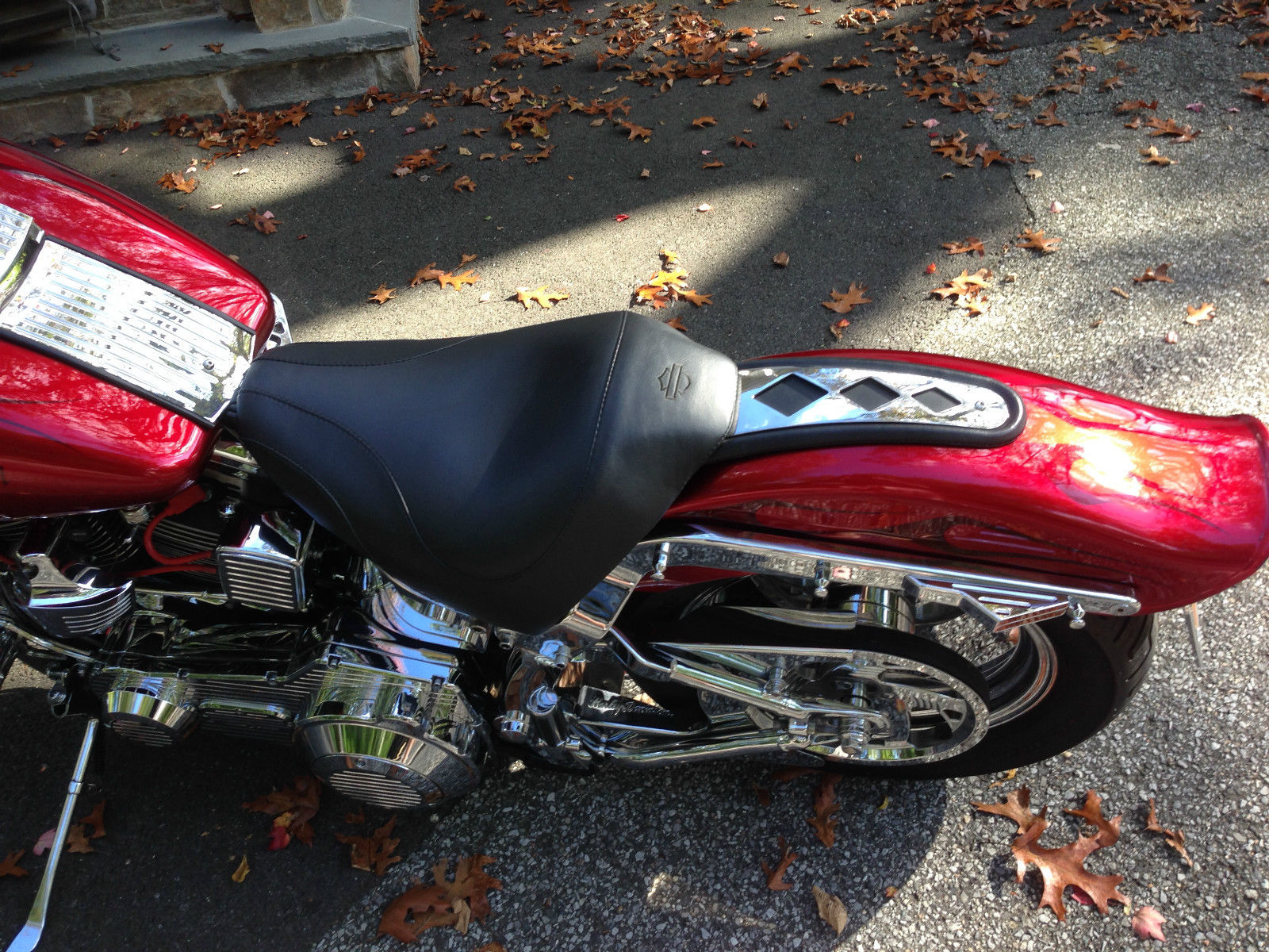 The bike was purchased new off the floor. customized as you see it from the Long Island City Harley dealership in New York. The speedometer was replaced a few years ago. due to a defect. When it was replaced it had under 2000 miles on it. Currently the new speedometer has about a 100 miles on it. Custom PaintCustom WheelsCustom PipesIncludes two seats. battery charger. helmet & coverBraided cables-Custom mirrors Lots of extra chrome & accessories There is thousands of $$$ in EXTRASLocal pickup. Payment will be bank certified check or cash. Bike always garaged and well maintained. This is a great bike that gets lots of compliments. At this price its a steal!!!