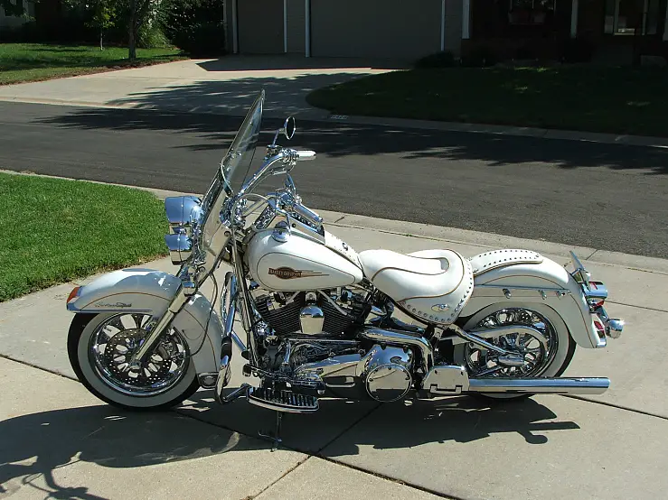2007 Harley Davidson Heritage SoftailThere are no Mechanical problems. It is in perfect running condition. Â Always garaged. Purchased July 2008 had 1. 84 miles. Started Custom Build in October 2009. Chrome Frame. 107 cubic inch. Dyno at 101hp/117 torque. 7 Speed Baker Transmission. Diamond Cut Heads. White Engine Case. LED Headlights. LED Running Lights. Bassani True Duals Exhaust. Performance Machine Hooligan Wheels with matching Sprockets. front and rear discs. and matching super gas face plate. New Compensator in 8/2013. New tires in 7/2013. 55mm Throttle body. White Leather Quick Release Saddle Bags. Passenger Seat & Back Rest. Too many extras to list. Â Feel free to ask any questions. Bike has been entered in 8 Local Bike Shows and won Best Chrome in all of them.
