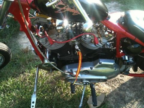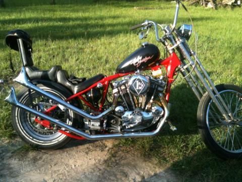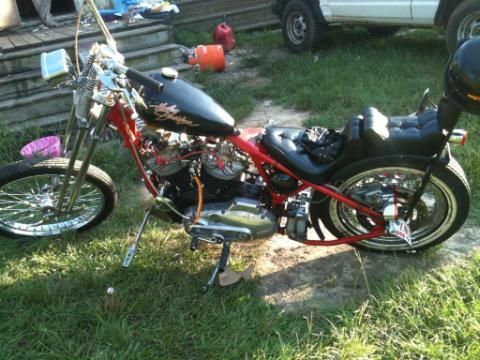 I have a NEW BUILT CUSTOM Harley Chopper. My homeboy put a lot in this build. 10. 1 cr weisco pistons. jugs. and rings. manly bronze valve guides and seals. manly stainless valves. PB+ Andrews high lift cams. brass oilers. rocker boxes chromed at atlas chroming Front end Old Butts mfg springer made from the late 60s early 70s in Southern California very rare and with the highest quality with spire nut finish caps. Rebuilt rockers and kneck bearings new bearings in an old hallcraft minidrum wheel with a brand new Avon speed master tire just mounted last week The frsme is a paucgho weld on frame with a fresh powder coat from universal coatings Lepara signature 2 seat. with a custom sissy bar and upholstered backrest to match.